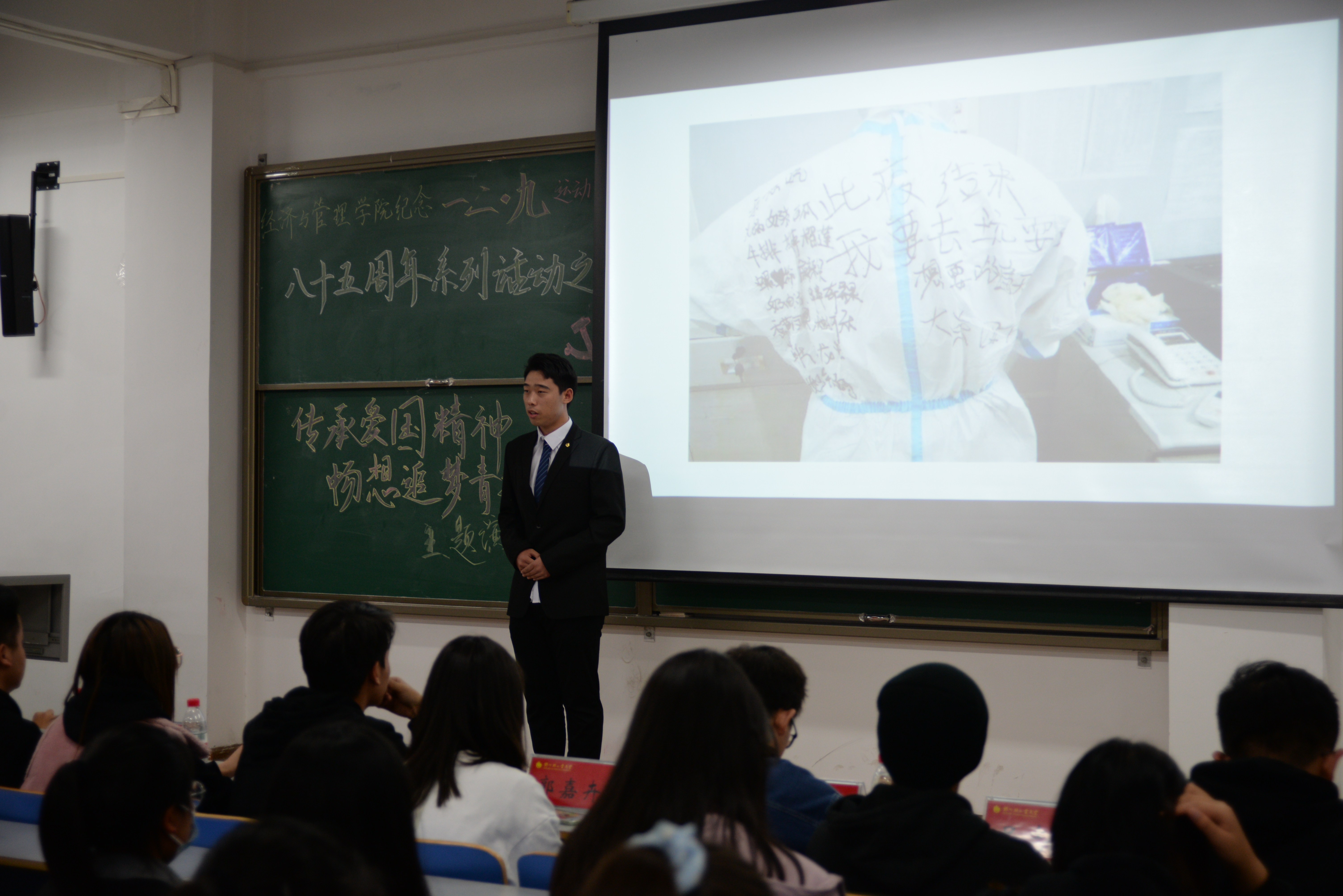 为引导同学们牢记历史、勿忘国耻,加强爱国主义教育,回顾一二·九运动的光荣历史,经济与管理学院于2020年11月5日19:30分,在经管楼309举办纪念一二·九运动85周年系列活动之“传承爱国精神,畅享追梦青春”主题演讲比赛,经济与管理学院2020级同学参与本次比赛。