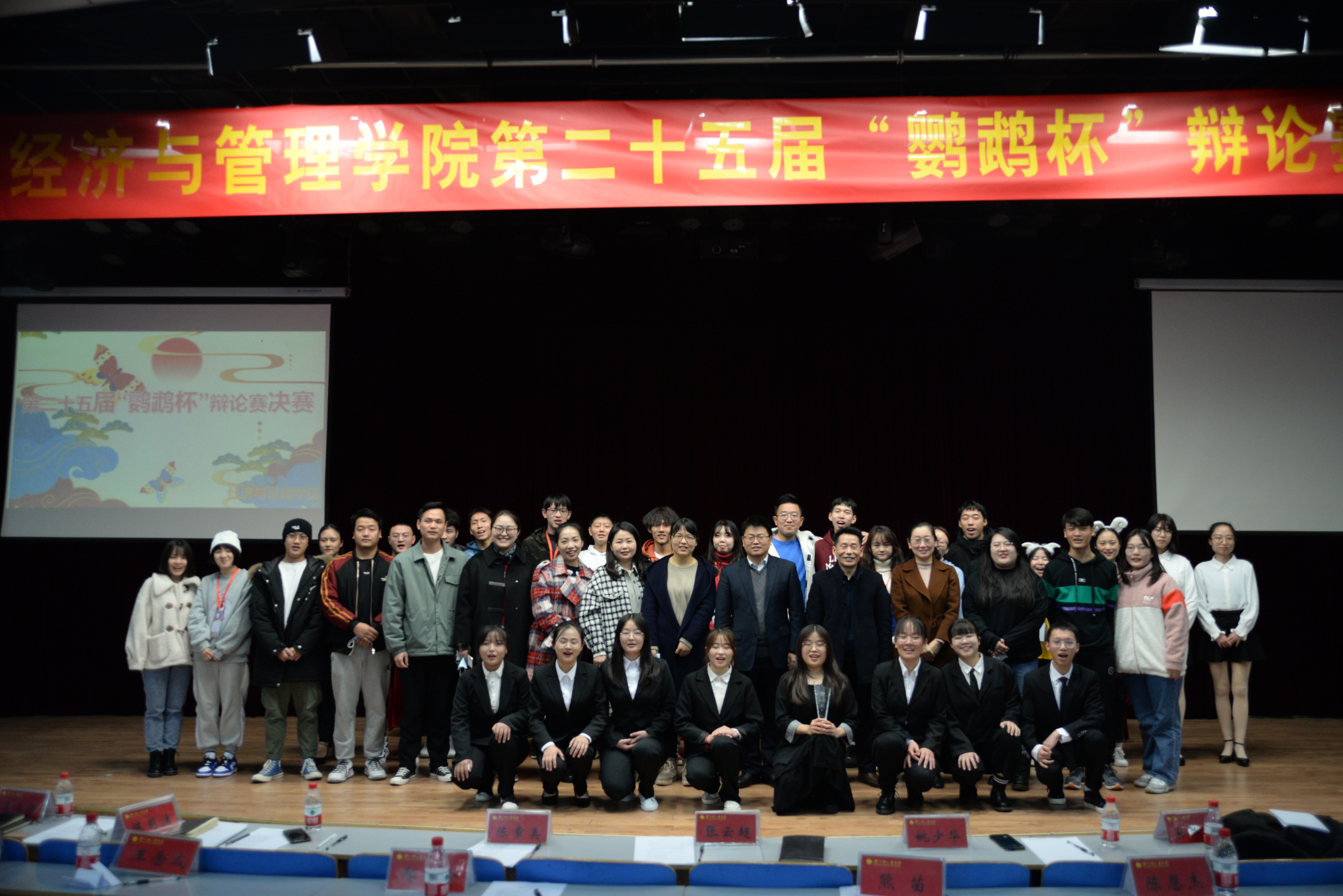 唇枪舌战,刻绘青春锋芒。经济与管理学院为锻炼学生逻辑思维能力,特此组织2020 级本科生全体班级举办第二十五届鹦鹉杯辩论赛。历经了连续两周的初赛、半决赛激烈鏖战,最终来自2020级经济学和2020级国际经济与贸易两支队伍经过重重堵截成功会师决赛。2020年11月26日下午,由我校经济与管理学院举办的第二十五届“鹦鹉杯”辩论赛决赛于活动中心208隆重举行。赛后,经济与管理学院党委书记张云超老师和党委副书记陈章美老师分别对其冠、亚军进行颁奖,团委书记姚少华老师为本次比赛进行点评与总结。