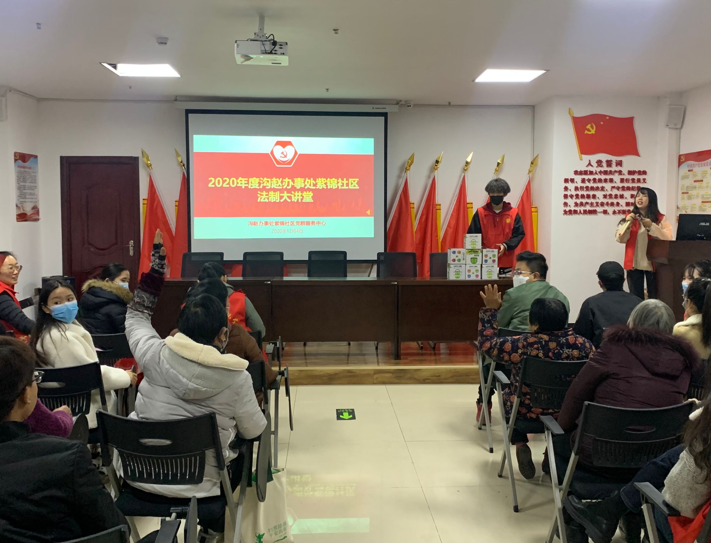 2020年12月4日15:30志愿者按时抵达紫锦社区,在工作人员的指导下,分组去分发法律常识宣传并向人们介绍今天是第七个国家宪法日,科普宪法相关知识。活动中,志愿者们向过往居民发放宣传资料,宣传《宪法应知应会小课堂》、《法律援助指南》等法律知识,给居民们讲解了《中华人民共和国宪法修正案》部分修订内容、推进宪法实施的具体要求和举措等与广大群众生产生活相关的法律知识。活泼有效的宣传吸引了众多社区人员的参与,并且开展了法律常识竞赛,居民们积极参与,热情高涨,这个小环节也大大增加了居民们的法律常识。