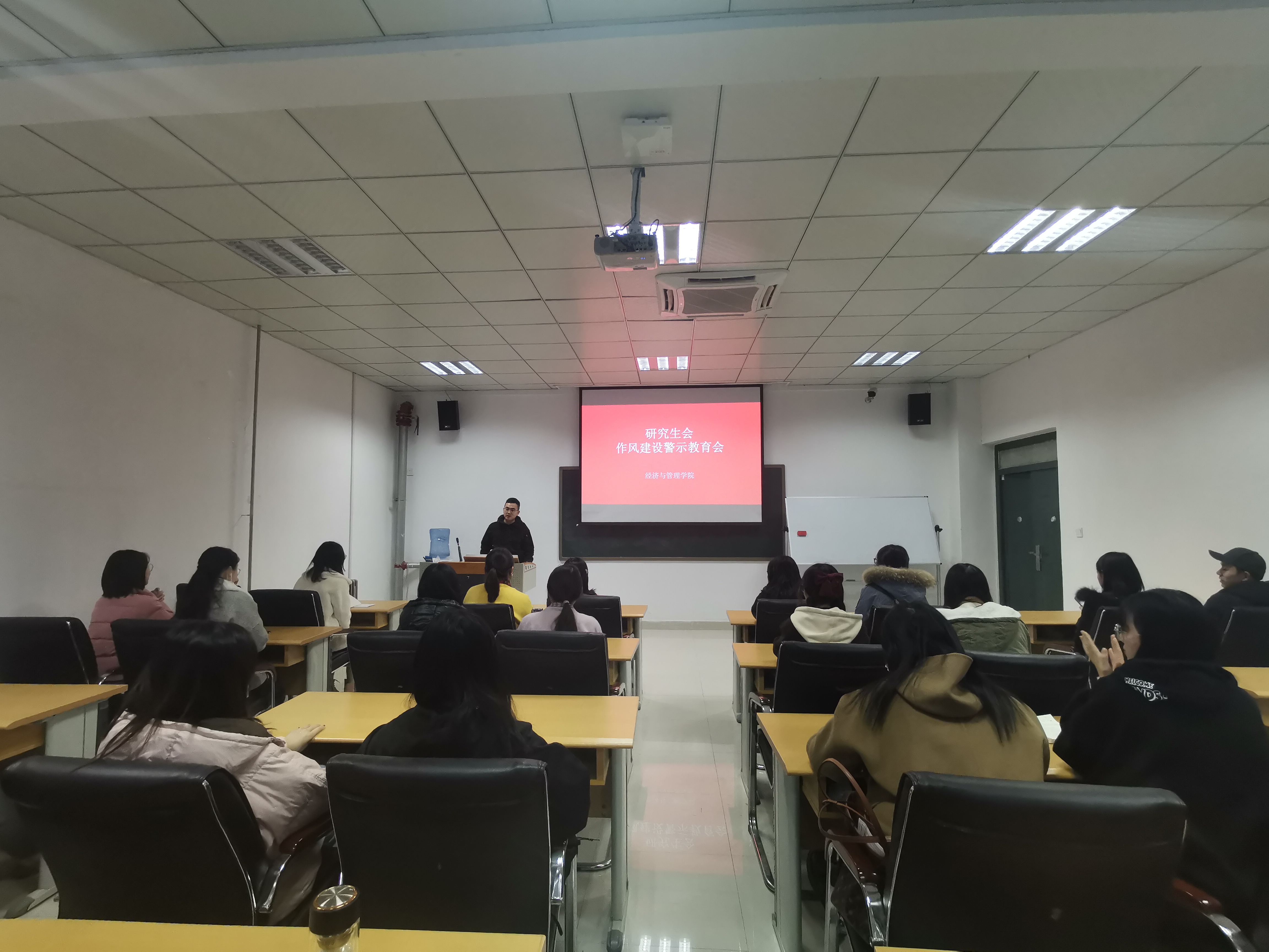 为进一步推进我院学生会(研究生会)改革进程,全面加强学生会(研究生会)作风建设,深入学习贯彻“全国学联二十七次代表大会”会议精神,经济与管理学院学生会(研究生)分别于12月3日、12月4日中午在经管楼211、311室召开了学生会(研究生会)作风建设警示教育会。学院团委书记姚少华老师、研究生管理办公室崔亚娟老师、邢艺贤老师出席了会议,全体学院学生会(研究生会成员)参加了会议,会议分别由学生会主席团成员陈恩杰、研究生会主席团成员王孟宇主持。