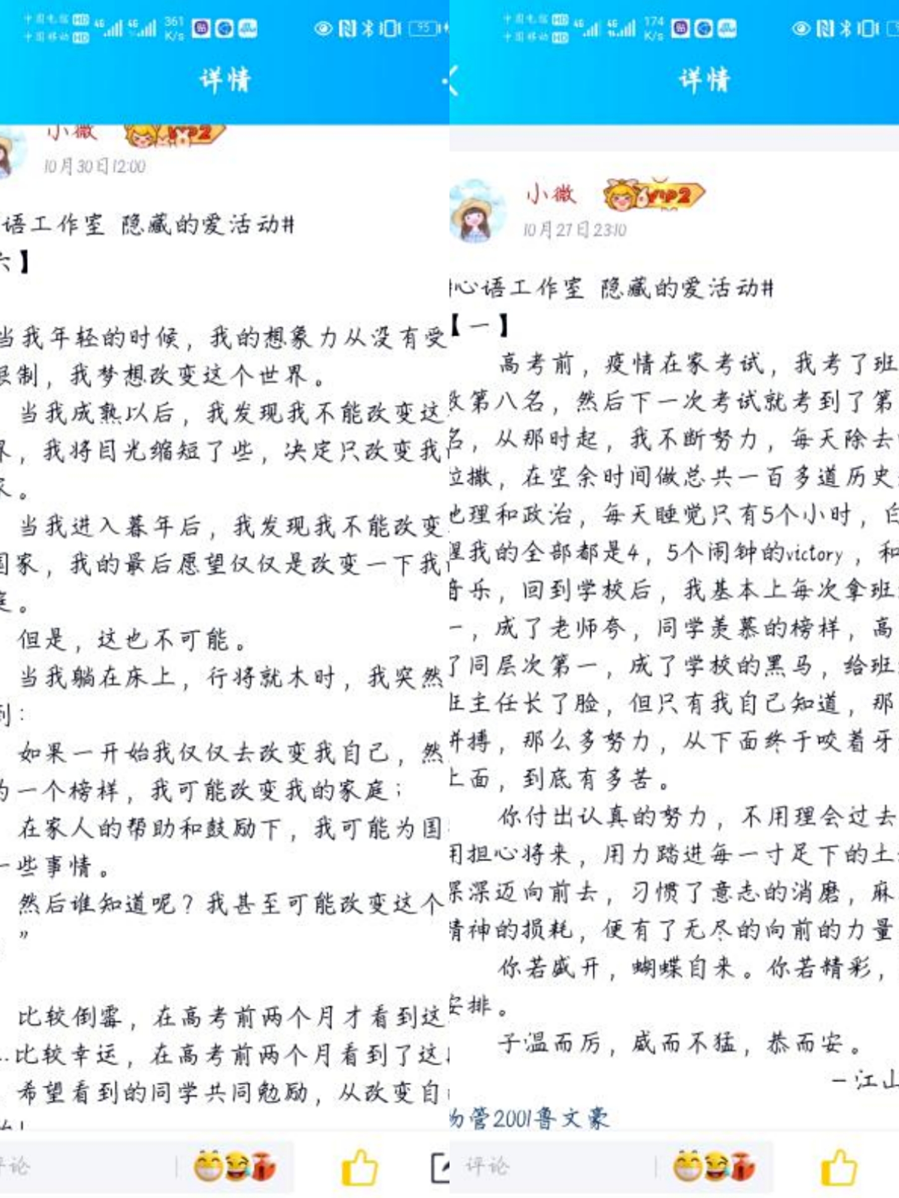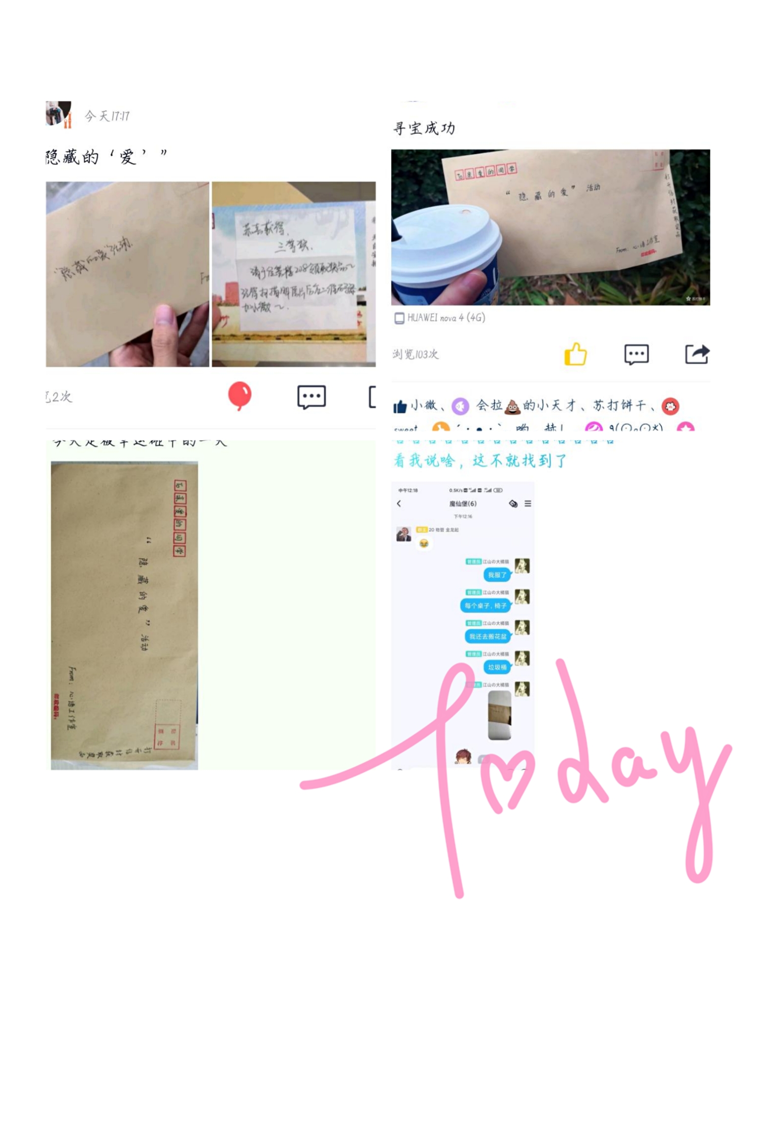 本次活动共分为三个环节。首先,创建活动官方QQ进行推广,让同学们了解到互动的目的及进行方式。其次,邀请同学们将曾温柔自己内心或是曾激励自己向上的语言或文字发送到活动官方QQ,由官Q动态进行展示,达到全面传播的目的。在活动后期,我们将征集到的语言或文字制作成精美的明信片装入信封中,藏匿在经管楼各个角落供同学们寻找。在为期24天的投稿阶段,同学们积极投稿分享自己在疫情期间的学习经历,展示了自己不畏艰苦,努力学习的精神和风采。在一篇篇分享中,同学们回忆起了自己当时挑灯夜战的艰辛,纷纷在动态下留言、宣誓,活动效果非常显著。投稿结束后,开始了为期三天的寻找阶段,同学们更是热情满满,积极参与,提前完成寻找任务,并纷纷在官方QQ留言,希望能够再次参与到活动中来。