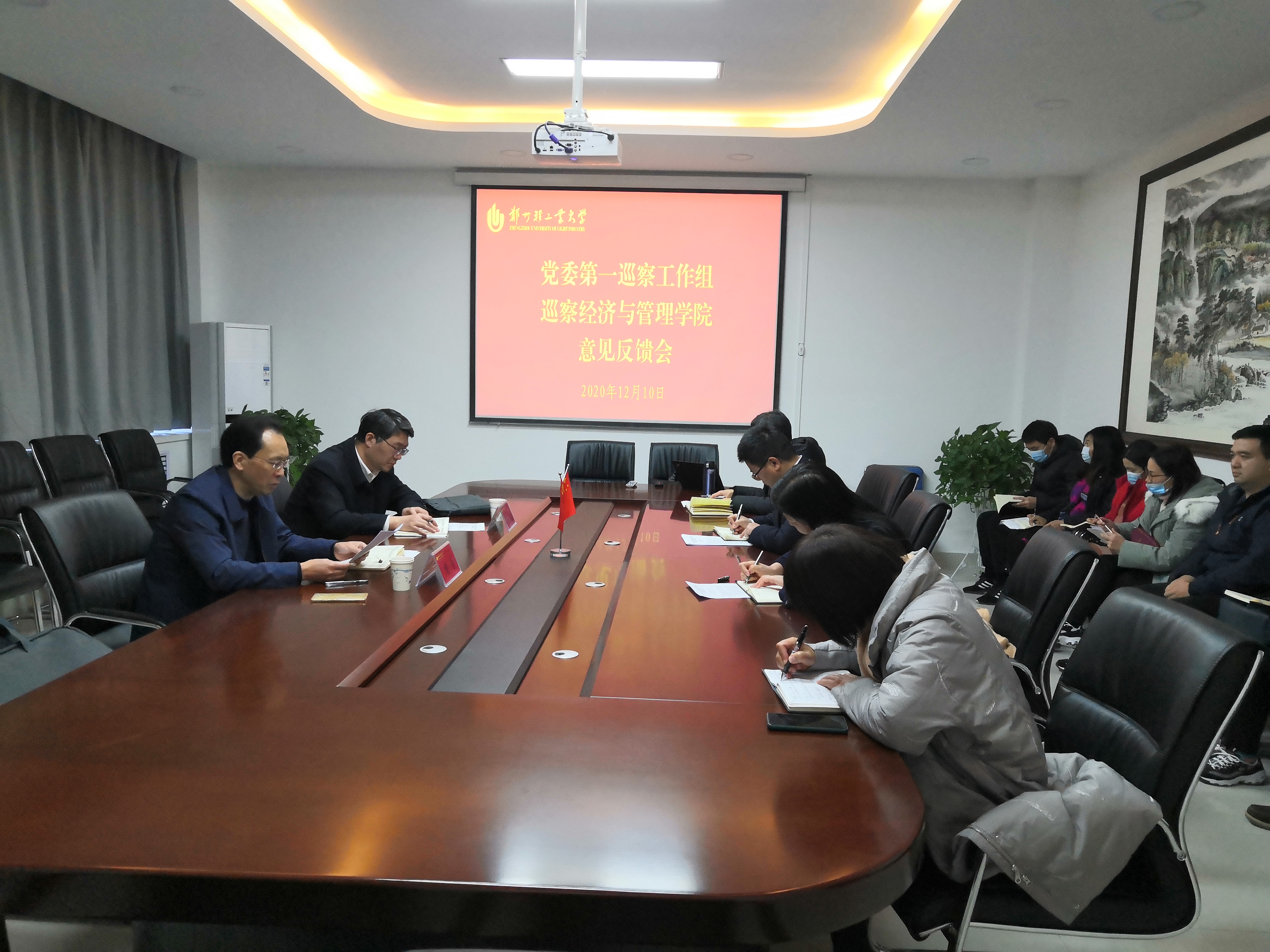 12月14日下午,校党委第一巡察工作组巡察经济与管理学院意见反馈会在科学校区经管楼219召开。党委第一巡察工作组组长、校纪委副书记陶浩,巡察工作组副组长、马克思主义学院党总支书记马寒出席反馈会,经济与管理学院领导班子成员和科级干部参加了会议。会议由经济与管理学院院长刘珂主持。