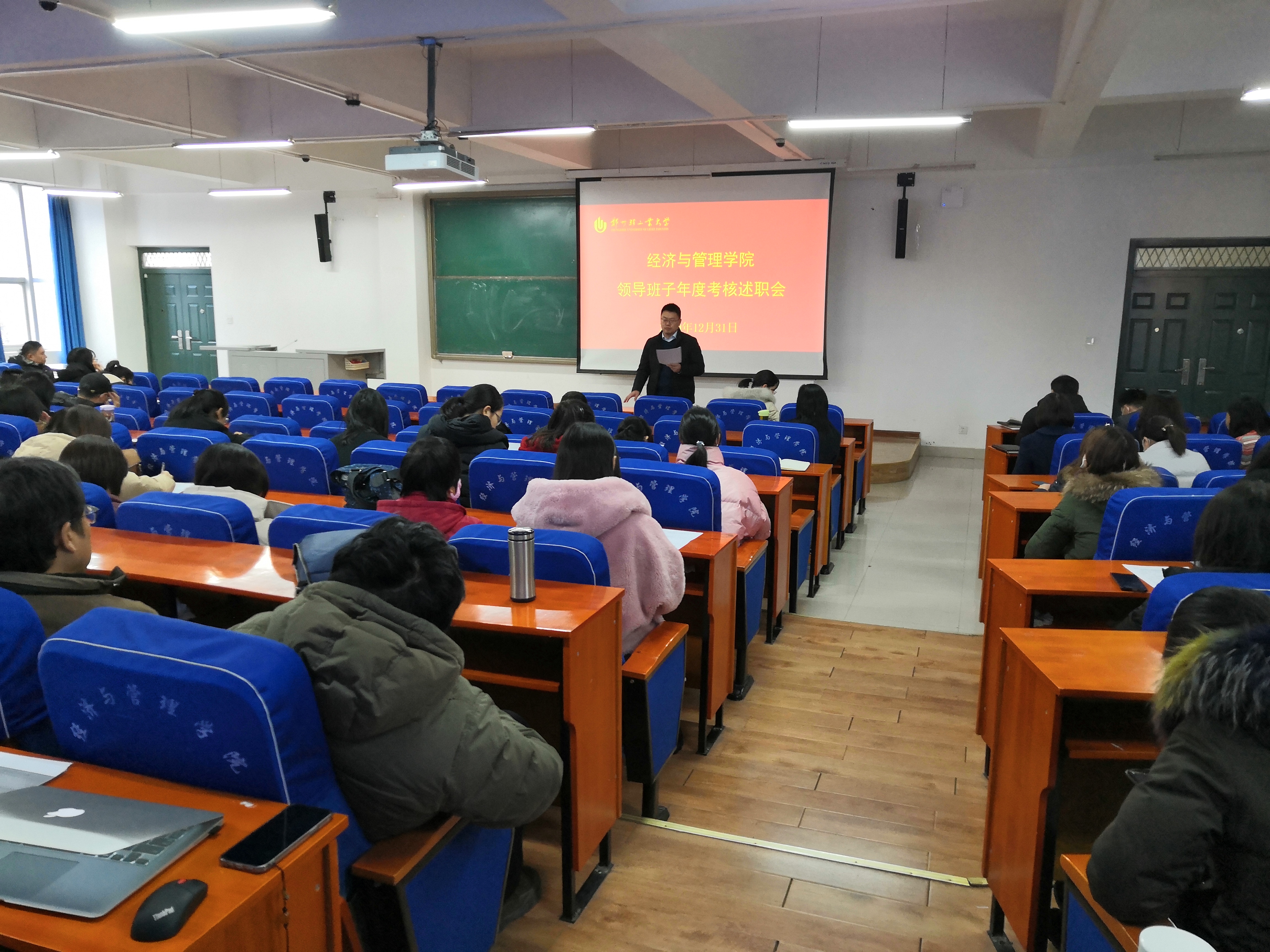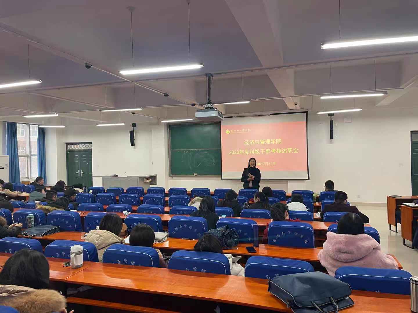 12月31日下午,经济与管理学院在经管楼211教室召开处、科级干部述职测评会。学院党委书记张云超主持会议,校党委组织部副部长邹娟到会组织开展对学院领导班子及成员的民主测评,学院全体教职工参加了会议。