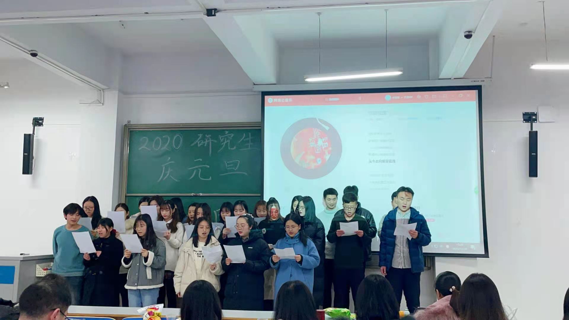 为喜迎元旦,展现经管风采,共筑美好未来。2021年1月1日下午,经济与管理学院在经管楼309举办元旦联欢会。辅导员崔亚娟老师、邢艺贤老师与2020级研究生带着对新的一年的美好期盼欢聚一堂,共贺佳节。