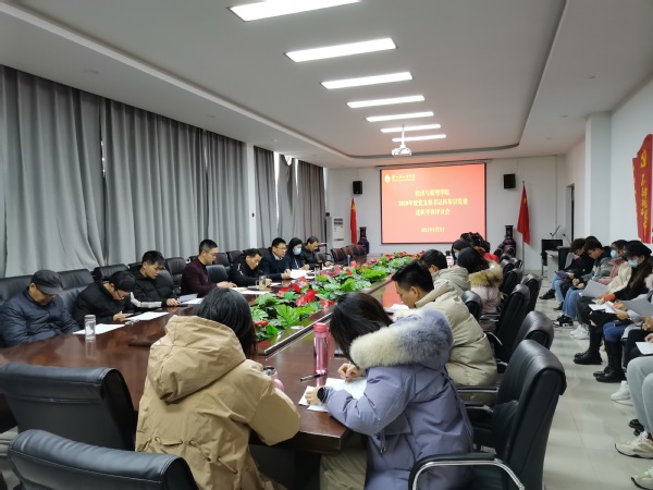 为加强工作考核,促进工作交流,强化党支部书记管党治党责任意识,进一步提升基层党建工作水平,1月7日上午,经济与管理学院党委在经管楼116会议室召开了2020年度党支部书记抓基层党建述职考核评议会议。学院党委委员、各党支部书记和师生党员代表40余人参加了会议。会议由学院党委书记张云超主持。