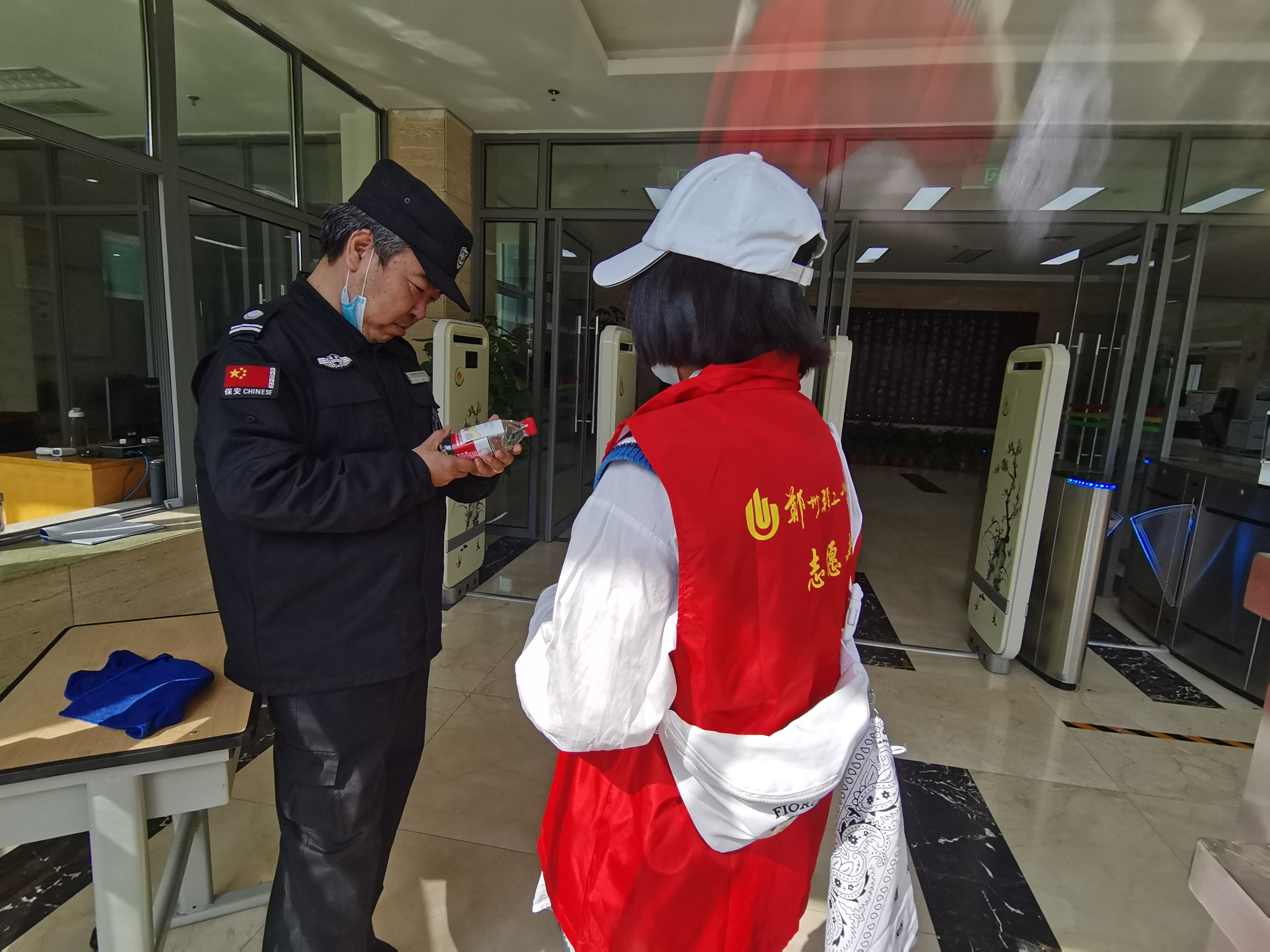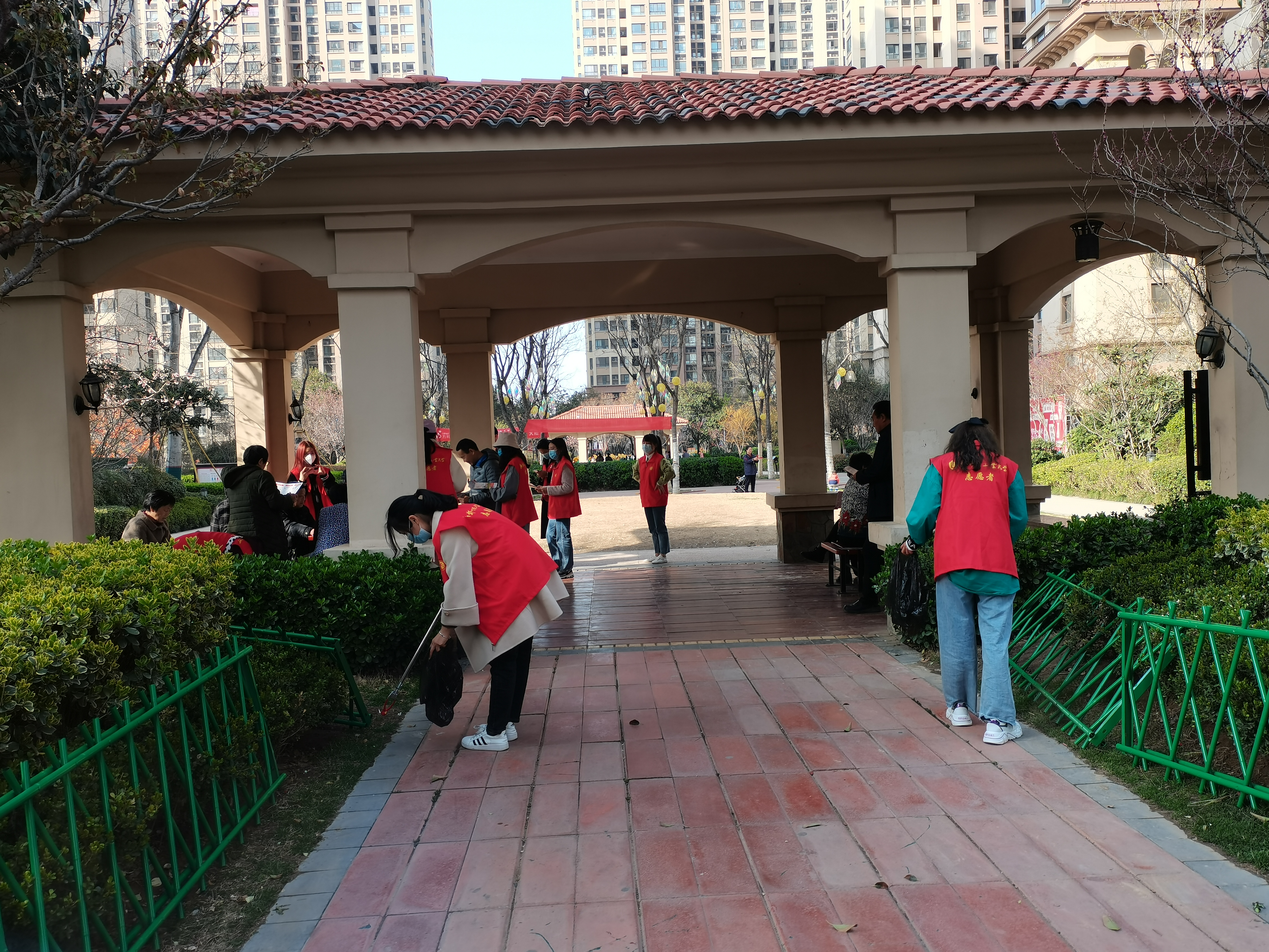 志愿者们在上课前为校内物业工作者们送去了贴有祝福语的矿泉水,并感谢他们的辛勤工作,同学们打造了一个优越的校园环境。安保人员、环卫叔叔以及值班的阿姨,在收到志愿者们的祝福、感谢后都露出了欣慰的笑容。中午,志愿者们来到万科紫锦社区,在社区办事处志愿人员的协同下,志愿者们经过简单分工后便开始行动起来。志愿者分别去到居民楼内协助排查消防设备是否存在安全隐患,并在社区内通过分发传单,向居民普及发生火灾灾害时如何进行自我保护的常识和技能,以提高居民们的消防安全意识,起到未雨绸缪的作用。不仅如此,志愿者们还打扫了街道以及绿化带的卫生,不仅减轻了环卫工人们的工作量,还为居民们提供了一个整洁、绿色的生活环境。本次志愿活动受到了社区居民的一致好评,充分发挥了当代青年学生的力量,使雷锋精神走出校门。为学校和社区捎去了春日的一份温暖。