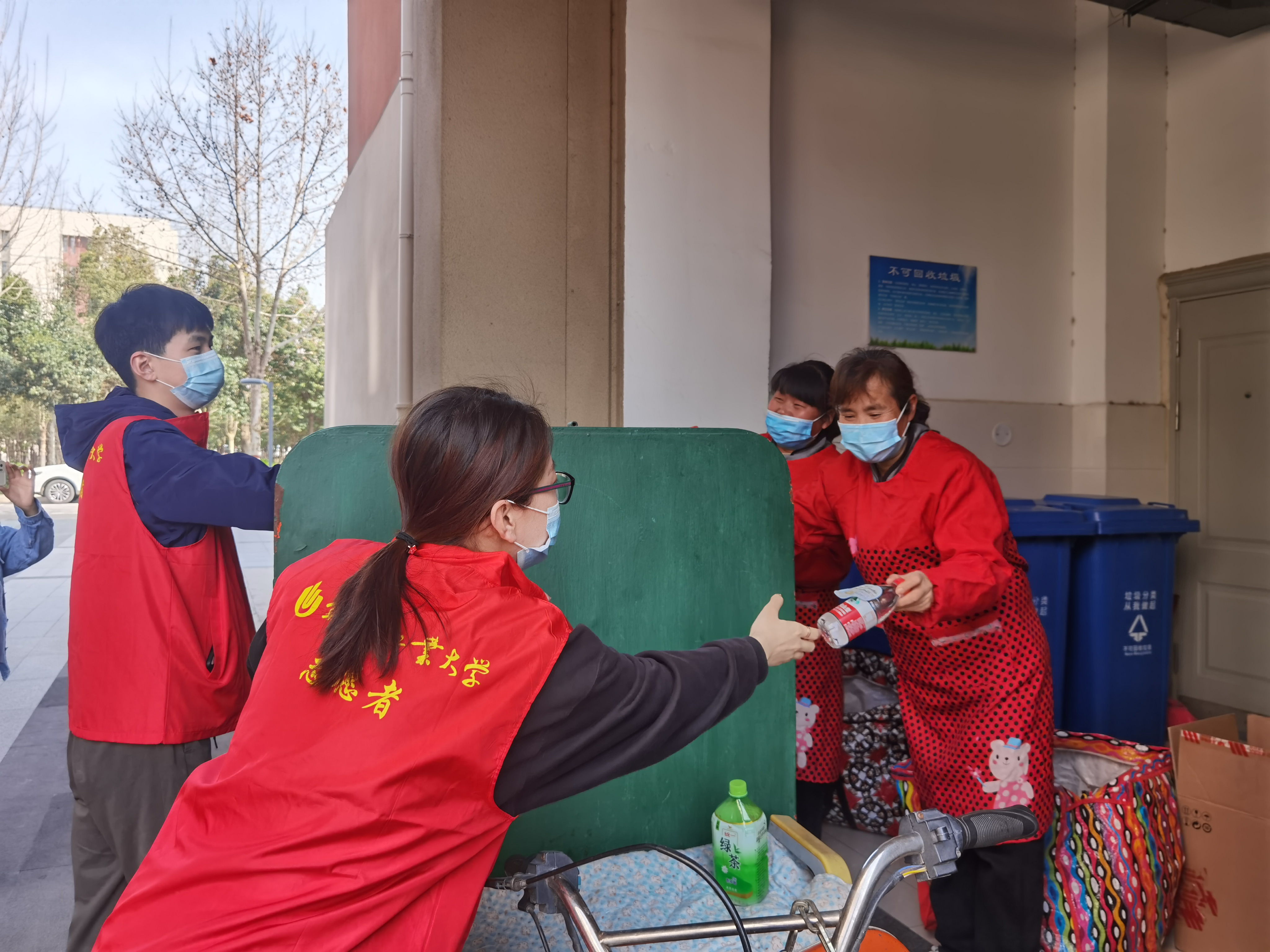 志愿者们在上课前为校内物业工作者们送去了贴有祝福语的矿泉水,并感谢他们的辛勤工作,为同学们打造了一个优越的校园环境。安保人员、环卫叔叔以及值班的阿姨,在收到志愿者们的祝福、感谢后都露出了欣慰的笑容。中午,志愿者们来到万科紫锦社区,在社区办事处志愿人员的协同下,志愿者们经过简单分工后便开始行动起来。志愿者分别去到居民楼内协助排查消防设备是否存在安全隐患,并在社区内通过分发传单,向居民普及发生火灾灾害时如何进行自我保护的常识和技能,以提高居民们的消防安全意识,起到未雨绸缪的作用。不仅如此,志愿者们还打扫了街道以及绿化带的卫生,不仅减轻了环卫工人们的工作量,还为居民们提供了一个整洁、绿色的生活环境。本次志愿活动受到了社区居民的一致好评,充分发挥了当代青年学生的力量,使雷锋精神走出校门。为学校和社区捎去了春日的一份温暖。
