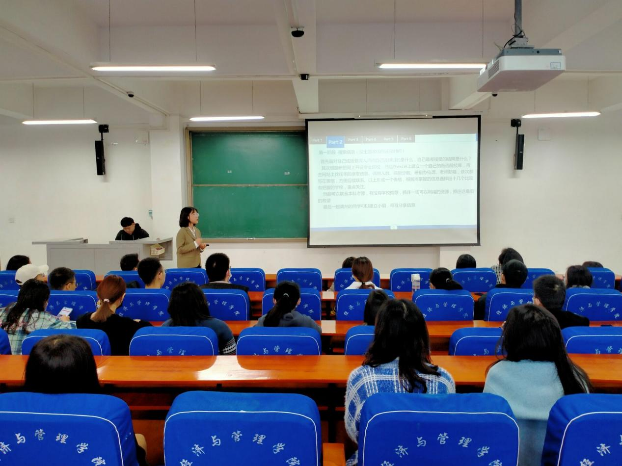会议伊始,彭青秀老师首先分析了目前的考研形势,并从专业课的复习、侧重点的把握、英语口语及专业英语的准备、面试的技巧、调剂院校的选择等方面进行了详细指导,同时,她鼓励同学们要调整好心态,增强自信,以最佳的状态参加复试,努力实现自己的考研目标。随后,学院2020级研究生代表张佳讯同学根据自身的考研经历,精心制作PPT,从自我定位、复试准备、调剂流程等方面谈了她的经验和体会。最后,陈章美副书记强调当下正值考研复试准备的关键阶段,鼓励同学们结合自身实际情况,提前认真准备,积极把握机会,大胆展示自己的优点,努力实现自己的深造梦想。