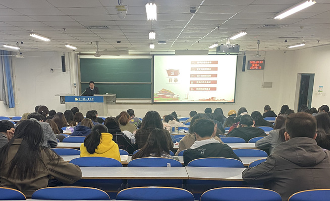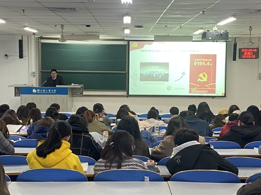 迎接中国共产党百年华诞,扎实推进党史学习教育,引导青年大学生学党史、听党话、跟党走,明理、增信、崇德、力行,3月16日晚,经济与管理学院党委书记张云超以《中国共产党为什么能?》为题,在科学校区三教楼204教室为学生讲授春季开学思想政治教育“第一课”,学院2018级财务管理、国际贸易、电子商务专业100余名学生参加。