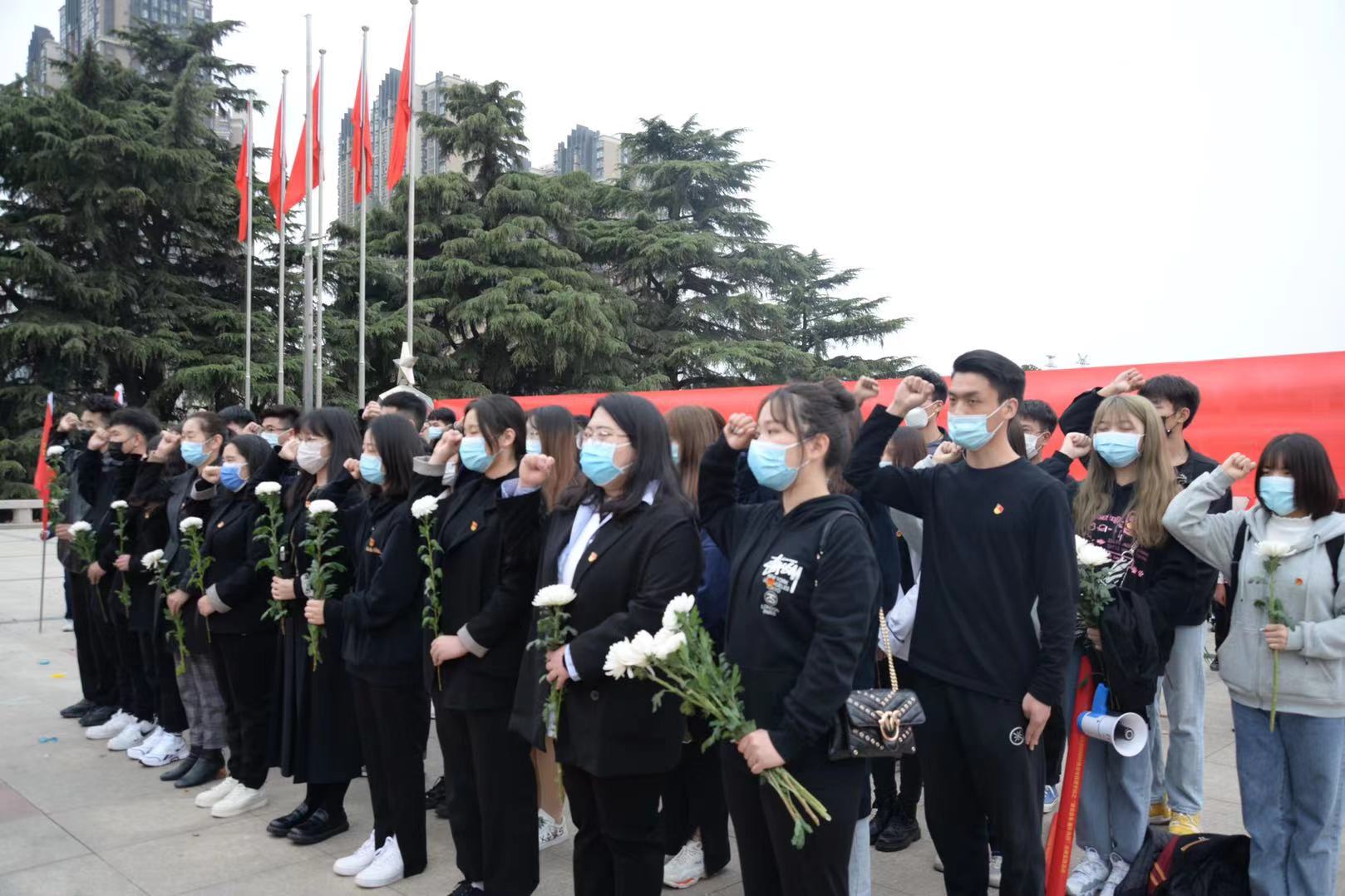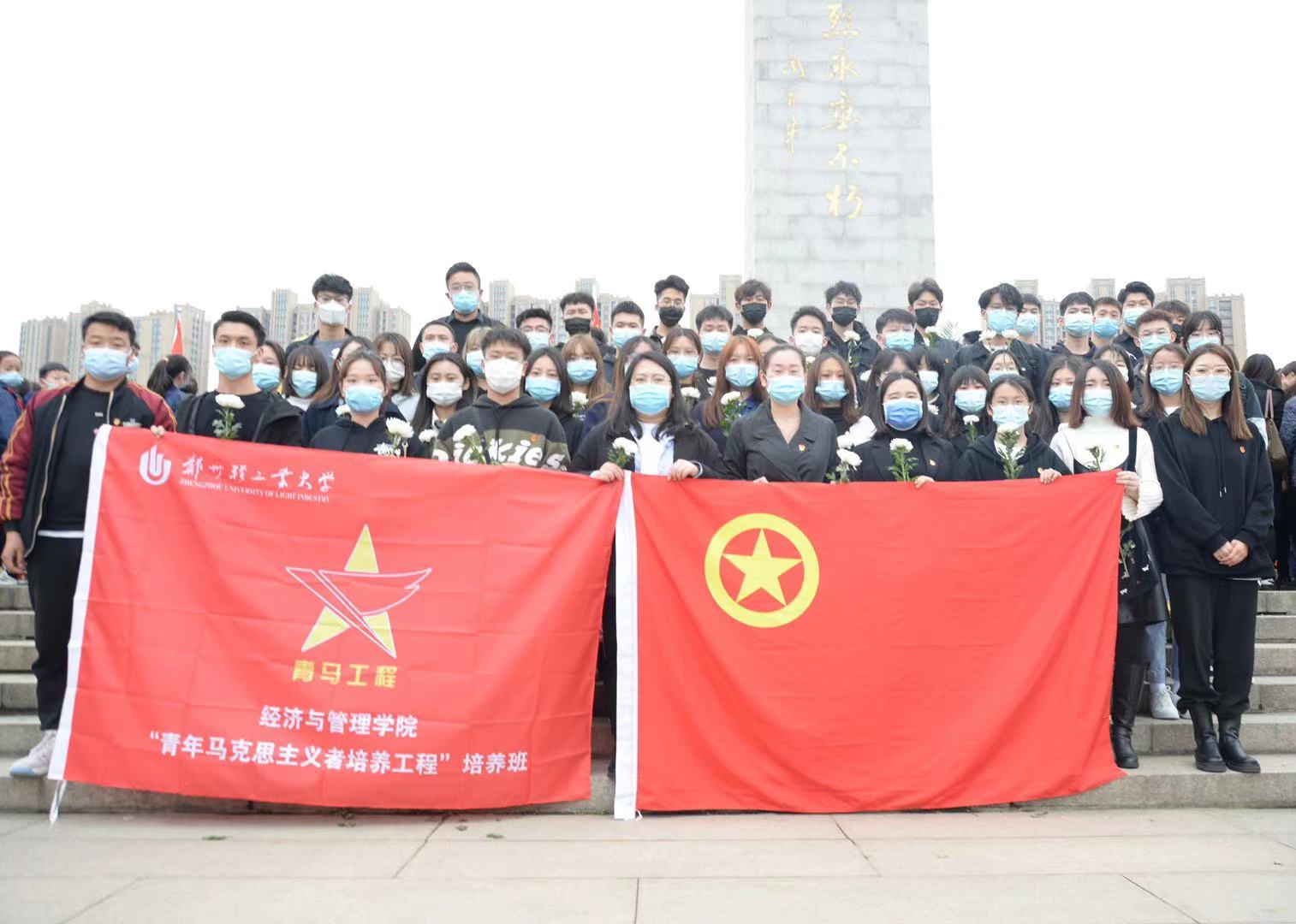 经济与管理学院师生代表在郑州革命烈士陵园前集会,手持白菊花,神情凝重肃立。丰碑永铸思英烈,浩气长存祭忠魂。在青松翠柏的掩映中,在鲜红的团旗映衬下,郑州革命烈士纪念碑显得格外庄严肃穆。参加祭扫活动的师生们在革命英雄纪念碑前默哀致敬,学院青马班学员迟郁铮同学进行了团旗下演讲,呼吁同学们应认真学习党史、新中国史,号召团员青年用自己的实际行动沿着革命先烈的足迹,坚定信念,继续前行,努力成为新时代的奋斗者、引领者。王念成同学带领团员青年们重温入团誓词,铿锵有力,每一句誓言的背后都是一颗炽热滚烫的心。随后全体师生面向革命烈士纪念碑三鞠躬,并绕纪念碑一周,向为中华民族解放和人民革命事业而英勇献身的革命先烈敬献鲜花。随后,经济与管理学院师生一同参观中原英烈纪念馆,讲解员饱含深情的带领同学们回顾了共产党的百年奋斗历程。百年来,中国人民在中国共产党的领导下,前赴后继,为新中国的建立抛洒热血、英勇献身,谱写了一曲曲感天动地的人生华章。“青松从不畏惧,哪怕艰难斗争浸满血迹”。