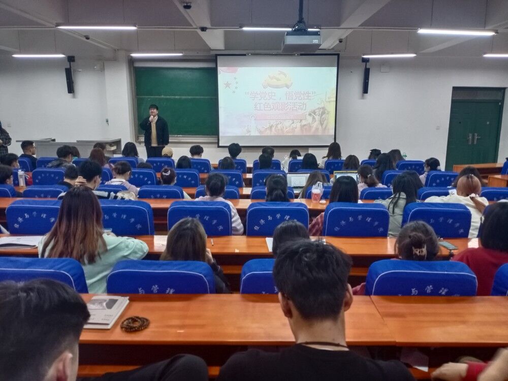 为庆祝中国共产党成立一百周年,激发学生党员的爱国热情,4月11日下午3:20和6:30,经济与管理学院组织学生党员在经管楼211室开展了“学党史 悟党性”红色观影活动。经济与管理学院全体学生党员参加了此次活动。