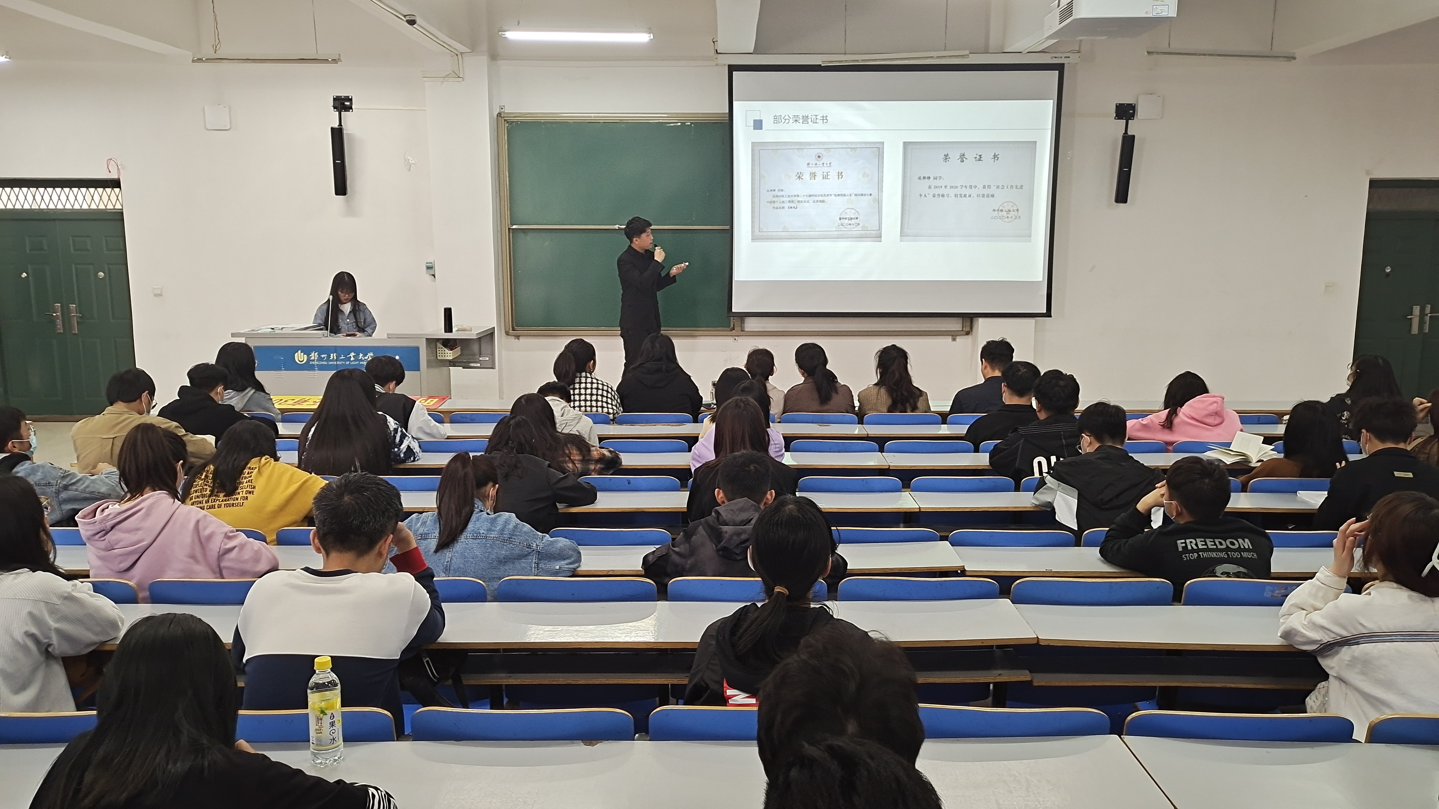 学党史树榜样先进典型展示活动前期通过自愿申报、材料审核团支部民主评议等方式,涌现出了一批优秀团员、优秀团干部、先进团支部在展示活动上,优秀团员和优秀团干思想建设、组织引领、社会实践、志愿服务、创新创业等方面通过PPT展示取得的优秀成果他们积极进取,甘于奉献,用实际行动践行团员使命。先进团支部则在支部建设、学风建设、思想建设、支部荣誉等方面展示了团支部的风貌现场的观众认真聆听,用激烈的掌声表达敬佩并表示以这些优秀团员、优秀团干为榜样,不断努力。