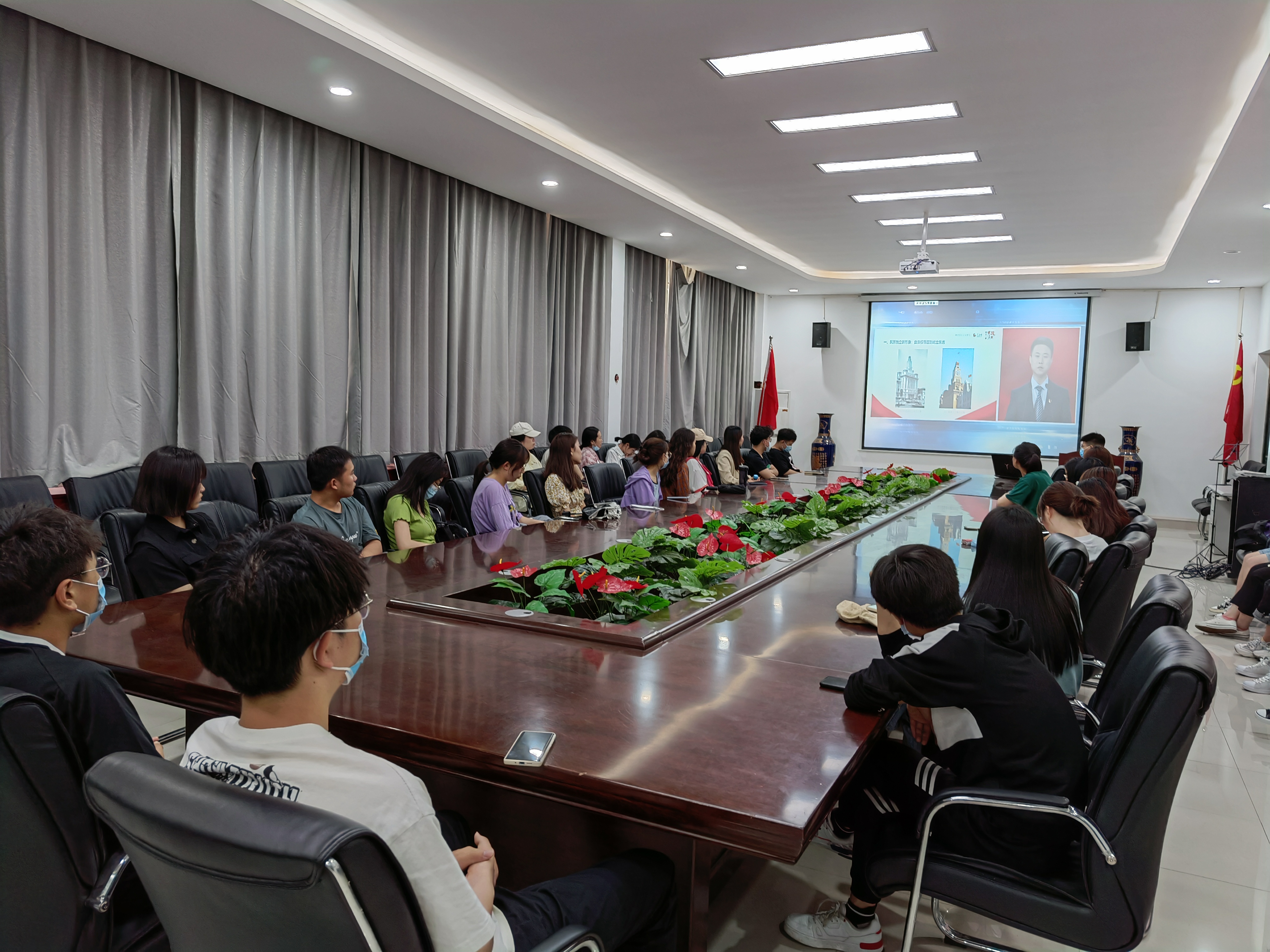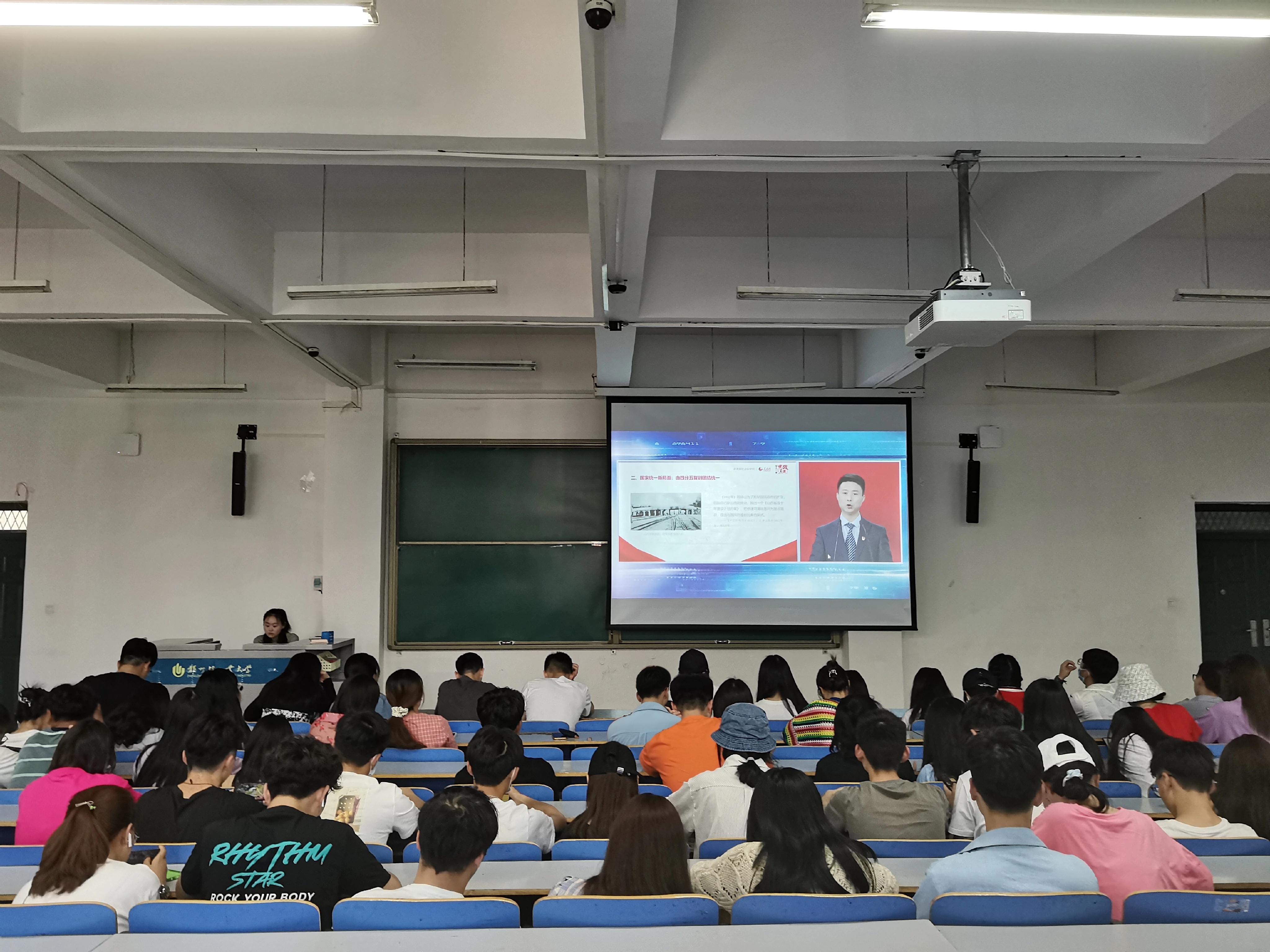为深入贯彻落实关于深化思想政治理论课改革创新和“大思政课”的重要指示批示精神,全面落实习近平总书记的重要讲话精神,为纪念中国建党一百周年,强化“四史”学习教育,坚定理想信念。经济与管理学院于2021年5月9日下午在经管楼116室、309室设立主会场,组织我院学生党员、入党积极分子、团干代表以及院青马班成员观看了“同上一堂思政大课——‘四史’讲堂新中国史篇”,其他同学通过多种途径共同观看此次直播。