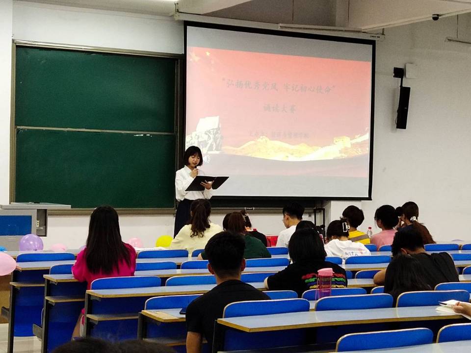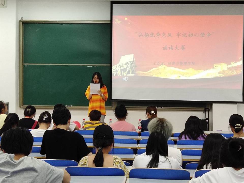 为庆祝中国共产党建党一百周年,重温党走过的光辉历史,激发广大学生们爱党爱国之情,经济与管理学院于6月4日晚7:30在经管楼309室举办了以“弘扬优秀党风,牢记初心使命”为主题的诵读大赛,学院部分团学代表参与其中。