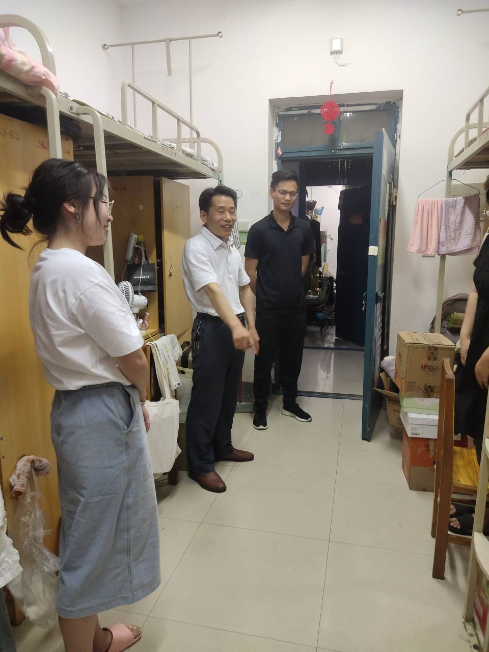 为了解毕业生离校前的生活情况和心理状态,保证毕业生安全文明离校,6月23日下午7时30分,经济与管理学院党委副书记陈章美和全体专职辅导员走访了我院2021届毕业生宿舍,给即将踏上人生新征程的毕业学子送去离别前最真挚的关怀与祝福。