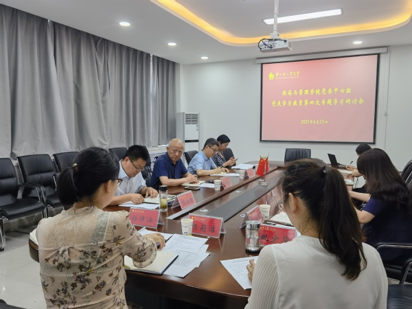 6月25日下午,经济与管理学院在经管楼219会议室召开党委中心组党史学习教育第四次专题学习研讨会,校纪委书记张晓根在纪委相关负责同志陪同下到会巡听指导。会议由学院党委书记张云超主持,院领导班子成员、管理岗科级干部参加了会议。