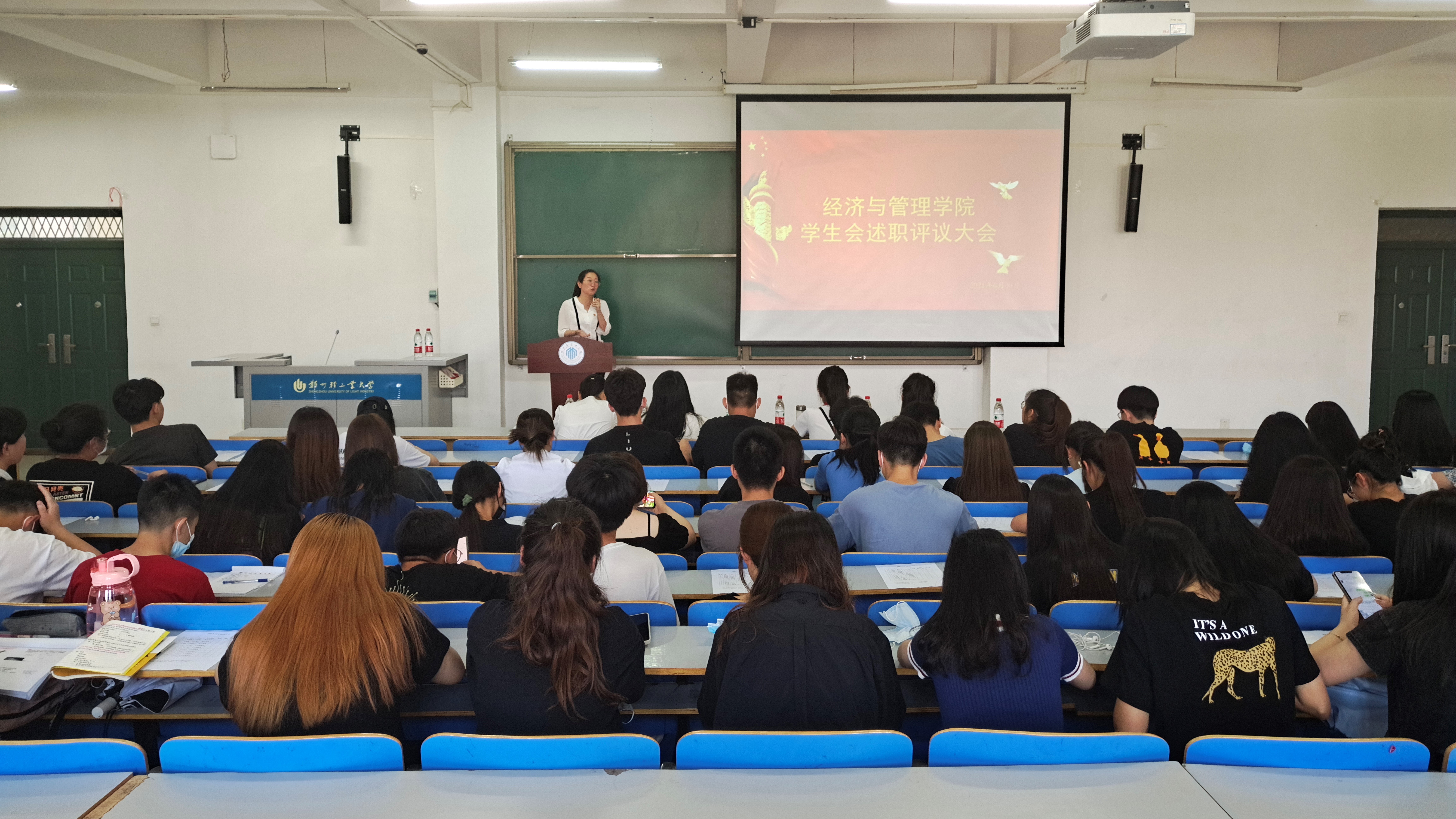 为进一步推进学院学生会组织深化改革成果落地见效,落实学生会组织述职评议制度,提高学生会工作人员的责任意识、履职能力,经济与管理学院学生会于6月30日14:00在经管楼309组织召开2020-2021年度第二学期经济与管理学院学生会工作人员述职评议大会。学院团委书记姚少华、学工办主任陈莉洁、全体专职辅导员、校学生会组织评议部成员和学院学生会工作成员及班级学生代表参加了本次会议。