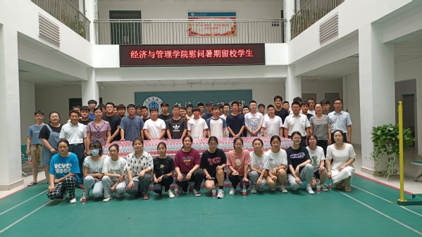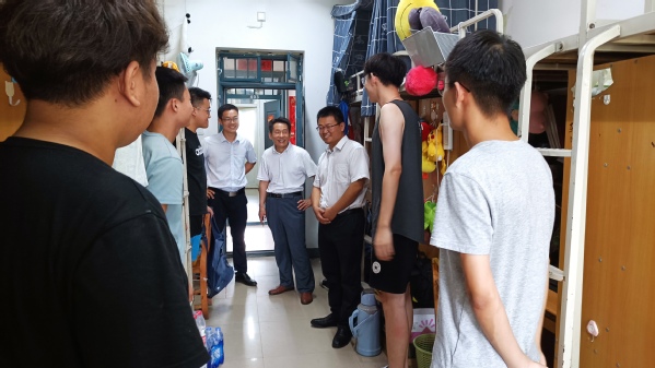 为全面掌握学院暑期留校学生学习、生活和思想状况,特别是汛情期间学生的安全稳定情况,保障暑期在校学生安全,切实做好学生服务工作,7月24日上午,经济与管理学院领导班子成员带领辅导员深入学生宿舍,看望慰问暑期留校学生,向学生发放校友捐赠的物资。
