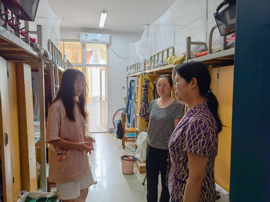 走访过程中,老师们详细了解暑期留校学生的校园生活情况和考研学习进展等情况,学院领导还专门详细了解汛期期间同学们的生活情况和家里是否有受灾情况,并对同学们在汛期期间不受影响坚持学习的拼搏进取精神给予了充分肯定,对受暴雨影响的同学及其家人表达了深切的慰问,为同学们发放了校友捐赠的矿泉水等物资,向同学们介绍了学校防汛抗洪工作开展情况。老师叮嘱同学们在校期间一定要树牢安全意识,不信谣、不传谣,认真做好灾后卫生防疫工作,勤与家人联系报平安;鼓励备战考研的同学要努力克服生活上的不利因素,充分利用好暑期宝贵时间,按照自己的复习计划科学安排作息,同时也温馨提醒大家要劳逸结合,遇到困难要第一时间与老师、学院取得联系,保持良好的身体状态和精神状态,为自己的理想而全力以赴。