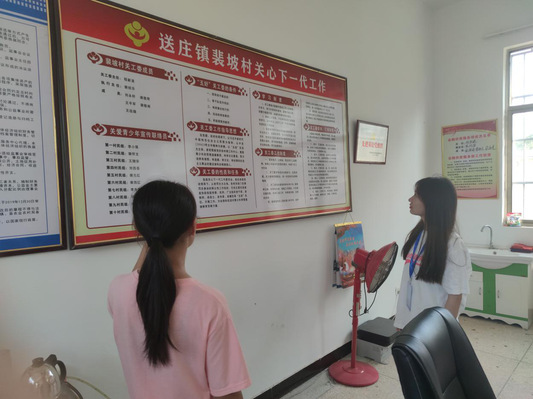 资助宣传到村委 上午10点,实践分队抵达的第二站是裴坡村村委会办公室。在实践队出示工作牌表明来意和身份后,村委会工作人员热情的接待了队员。