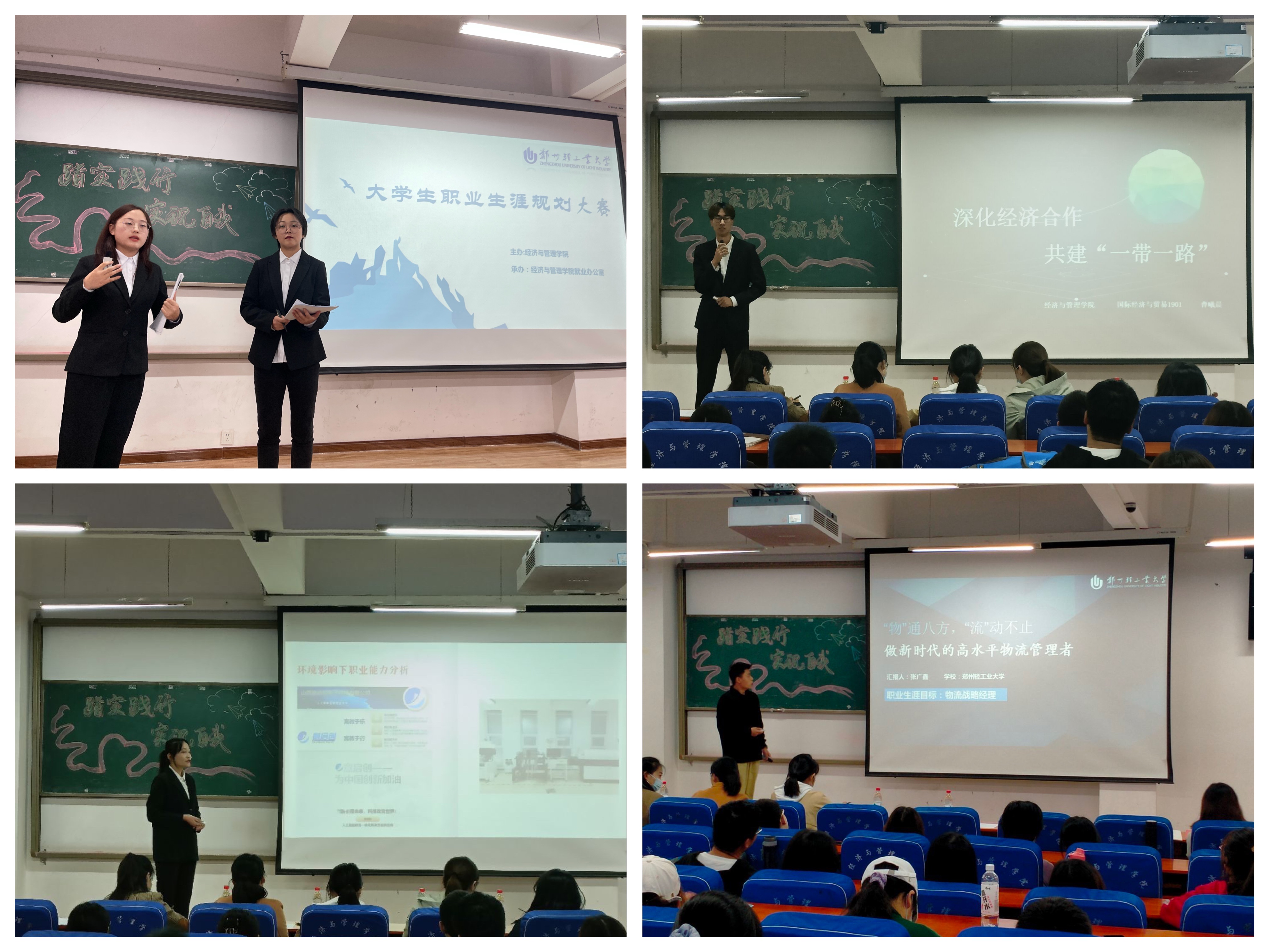 为了更好地帮助同学们树立明确目标,充分发挥个人专长,不断修正前进方向,做好职业生涯规划。2021年10月26日,经济与管理学院在经管楼211举办了第十六届大学生职业生涯规划大赛,学院学工办主任陈莉洁,专职辅导员孙沛涵、高冰倩、李育光、邢艺贤担任本次大赛的评委,部分学生代表参加了此次活动。