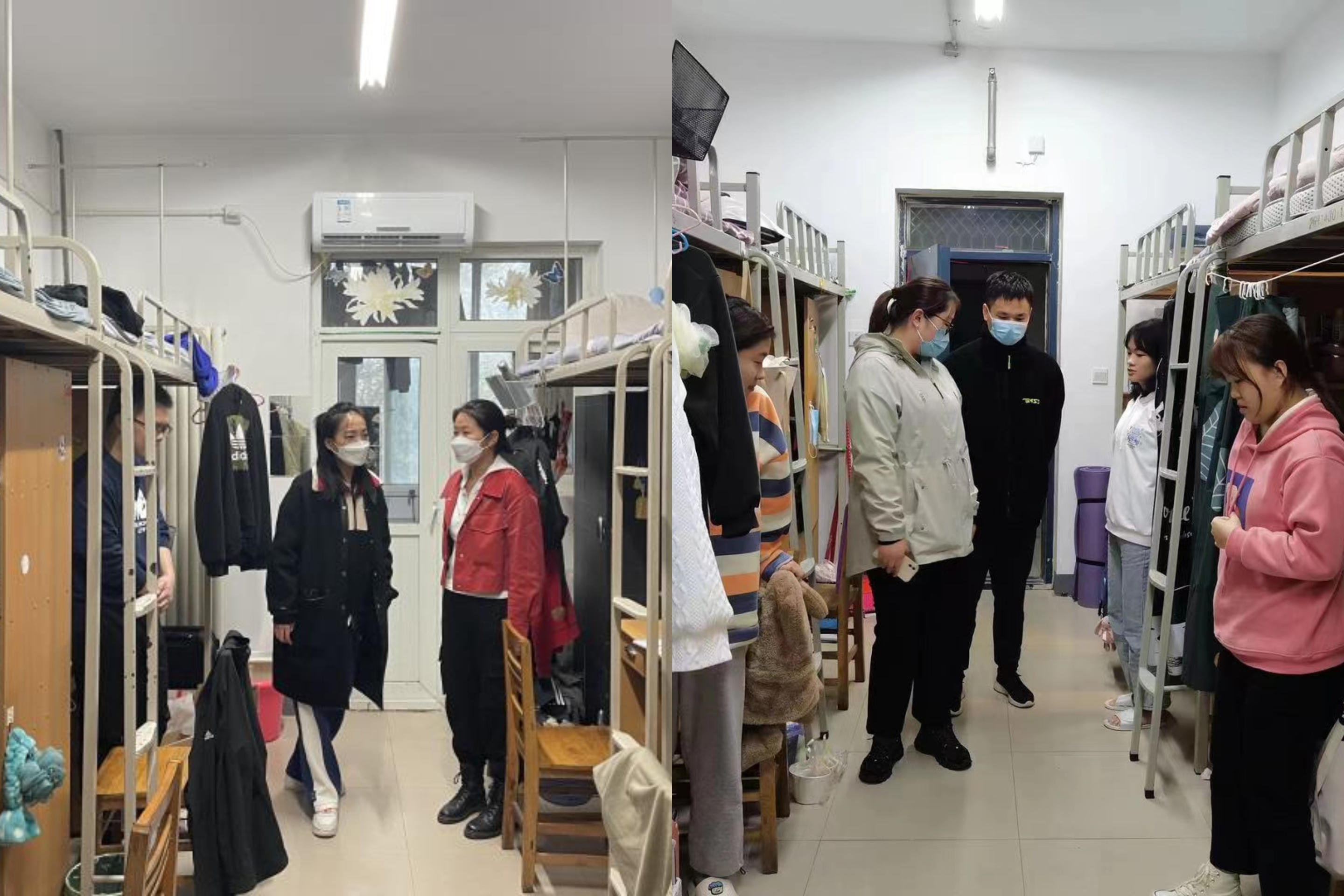 本次宿舍安全卫生大排查,学院老师认真排查全体学生的宿舍卫生、用电安全情况。在走访过程中,学院领导老师亲切地询问同学们近期的学习生活情况,嘱咐同学们加强安全防范意识,遵守学校的疫情防控管理规定,要做到每日按时健康打卡。通过走访和排查发现,大部分学生宿舍总体情况良好,个别宿舍存在用电不规范等现象。老师叮嘱同学们面对疫情做好自我防范,并保持宿舍卫生,养成良好的生活习惯;要提高自我保护和防范意识,下载并使用“国家反诈中心”APP,有困难及时向辅导员反映;在疫情防控常态化状况下,做好个人安全防护,坚持疫情打卡,做到非必要不出校、出门自觉佩戴口罩。同学们纷纷表示将会严格遵守学校的各项管理制度和疫情防控规定,以饱满的精神状态投入到学习当中去,共同营造良好的宿舍学习生活环境。