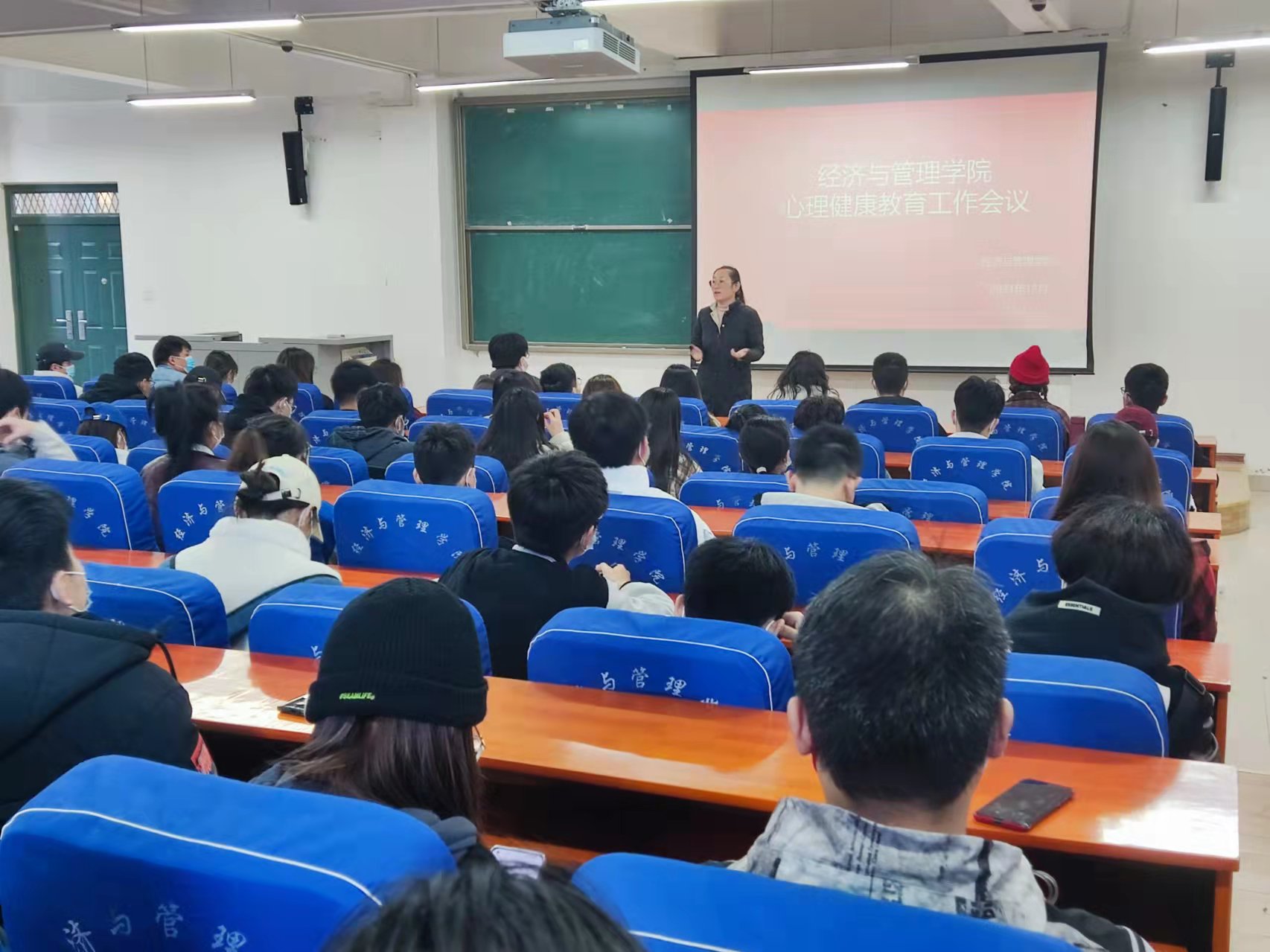为密切关注大学生的心理健康状况,对同学们正确提供有效的心理帮助,对特殊问题及时给予针对性解决,同时更好地为同学们提供有利于身心发展的成长环境,经济与管理学院于12月2日召开心理健康教育工作会议。此次会议由心理健康教育专职辅导员姚少华老师主持,学院党委副书记陈章美、心理健康教育专职辅导员高冰倩、学院心语工作室全体成员及学院各班心理委员参加了本次会议。