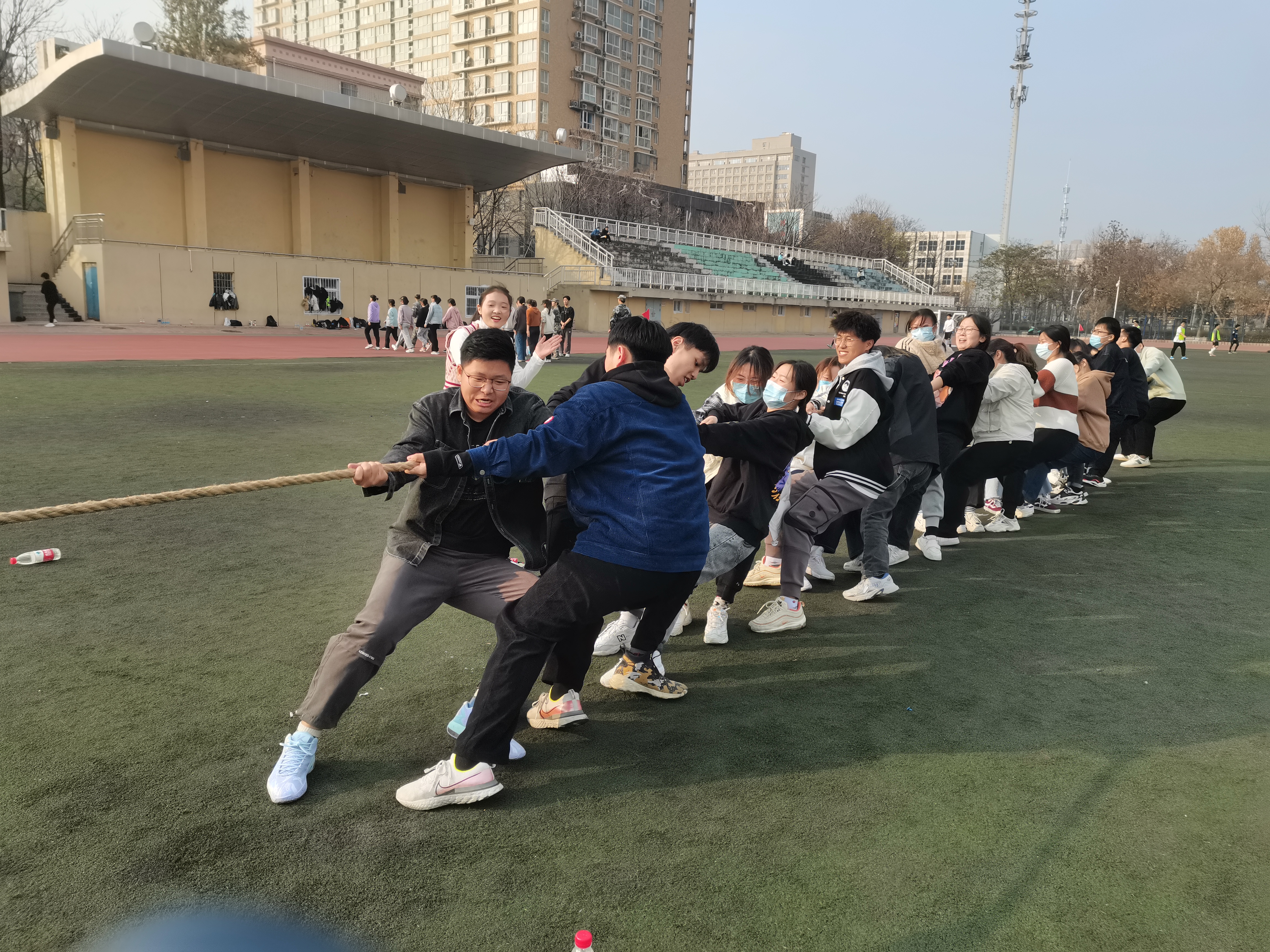为贯彻落实“五育并举、立德树人”的育才理念,拓展师生互动新场景,培养学生团结协作的集体观念和奋斗进取的体育精神,进一步丰富大学生素质教育活动形式,从而促进班级之间的沟通与交流,提升我院新生班级的凝聚力,营造健康文明、积极向上的校园文化氛围。经济与管理学院于12月4日下午14点在东风学校田径场举办了趣味运动会。经济与管理学院辅导员苏震老师和我院21级全体新生参加了此次活动。