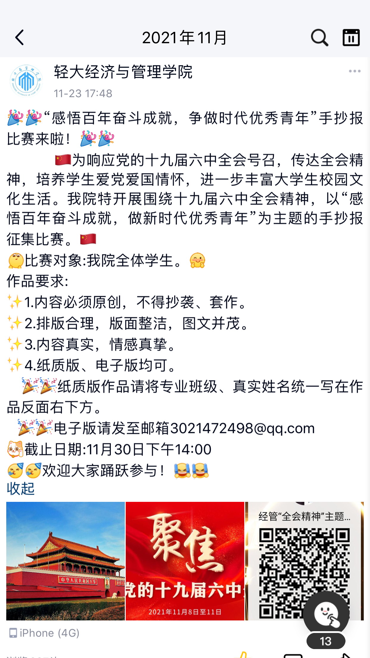 为深入学习贯彻党的十九届六中全会精神,深化拓展党史学习教育的形式内容,进一步引导我院学生深化对党的百年奋斗重大成就和历史经验的认识,推进全会精神学习走深走实、入脑入心。经济与管理学院于11月23日-12月7日举办了学习十九届六中全会精神主题手抄报比赛,我院各级学生参与了此次比赛。