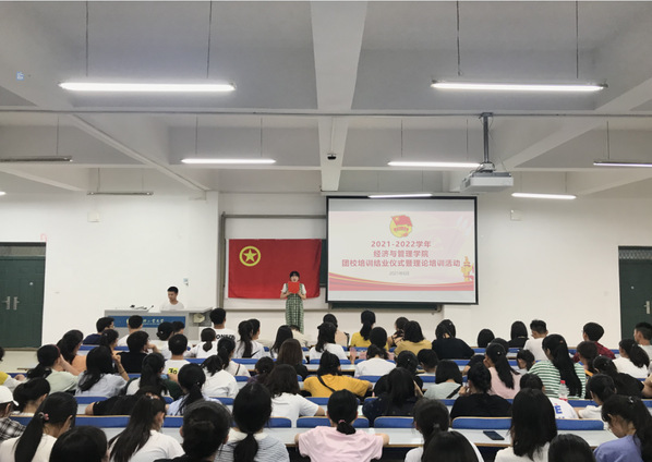 为深入学习贯彻习近平总书记在庆祝中国共产党成立100周年大会上的重要讲话精神,进一步落实在团员青年中开展“学党史、强信念、跟党走”学习教育,引导广大团员青年牢记新时代共青团的职责使命,增强我院团学骨干的政治理论学习,提升综合素质,从而促进经管学子理想信念培养,加强基层团组织的发展。经济与管理学院于6月29日下午在经管楼211室举办了团校培训结业仪式暨理论培训活动。学院团委书记姚少华老师以及我院2019级、2020级学生代表参加了此次活动。