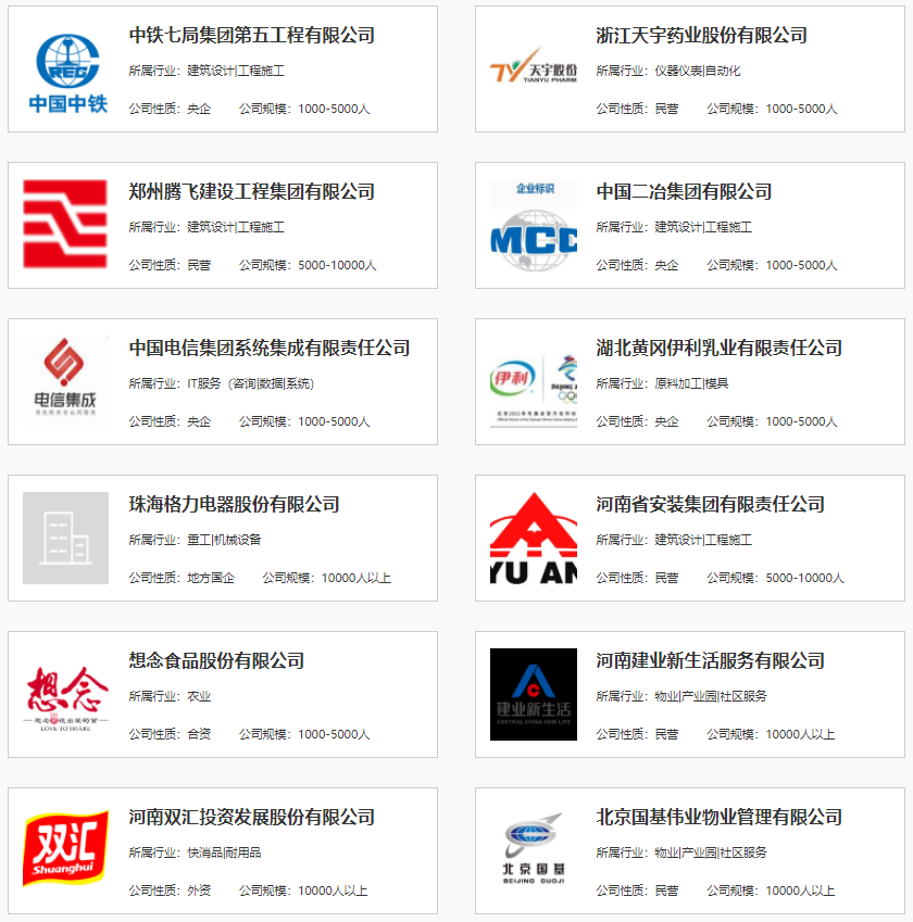 空中双选会部分参会用人单位截图