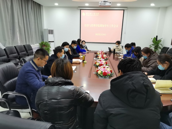 2月19日下午,经济与管理学院在经管楼219会议室召开期初学生工作会议。学院党委书记张云超、院长刘珂、全体专兼职辅导员参加会议。会议由学院党委副书记陈章美主持。