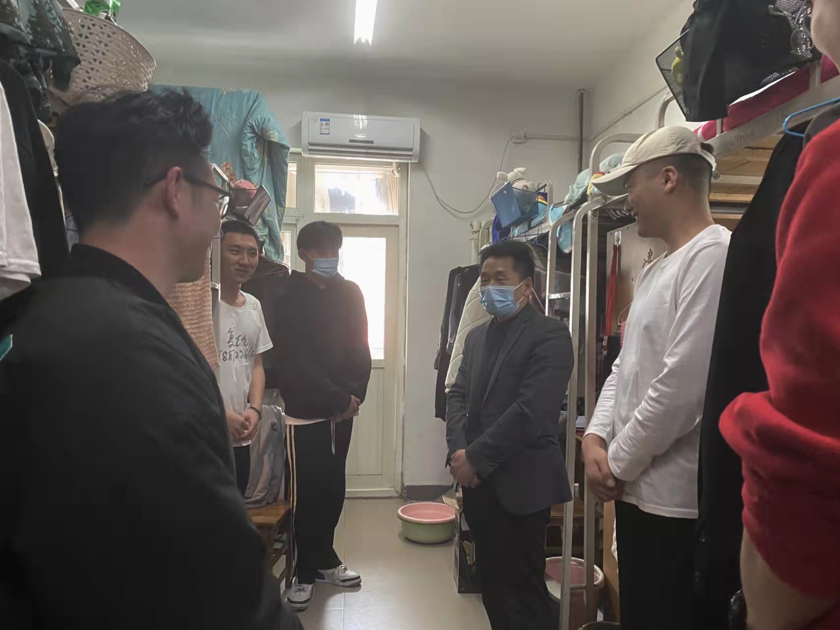 走访过程中,学院领导老师询问了解同学们在本学期的学习生活状况,老师们叮嘱学生要严格遵守学校疫情防控相关规定,做好个人安全防护、坚持疫情打卡,宿舍日常保持通风;严格执行“日报告”“零报告”制度,公共场合务必正确戴口罩;坚决落实网格化管理,严格落实学院网格化管理工作,压实每级网格长的责任,确保不漏一人,实现全员覆盖,不留死角;减少不必要的网购,收取快递时保持一米距离,做好消毒工作。老师们还耐心解答同学们的问题、认真听取大家的意见建议,并希望每一位同学都要以高度的责任心和强烈的使命感,坚决服从学校的疫情防控工作大局,共筑疫情防控安全线。同学们纷纷表示自己意识到了疫情防控的重要性,今后将会严格遵守学校的各项管理制度和疫情防控规定,以饱满的精神状态投入到学习生活当中去,共同营造良好的宿舍学习生活环境。