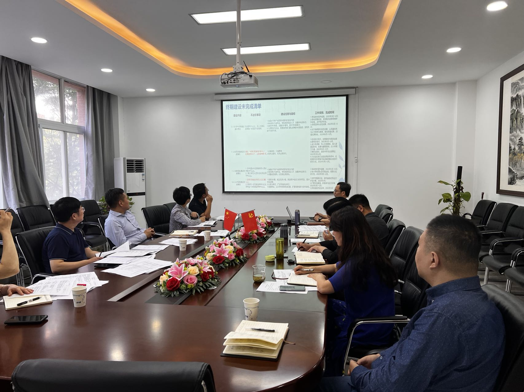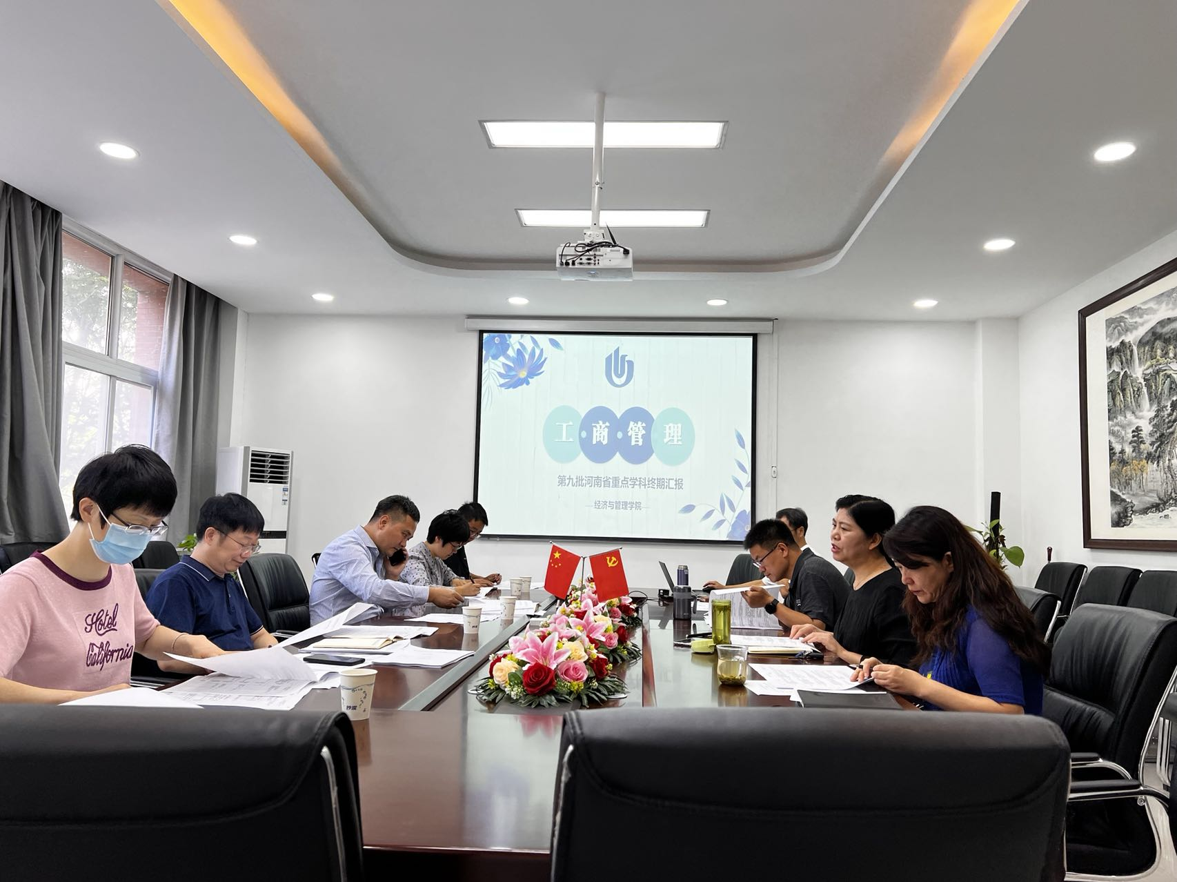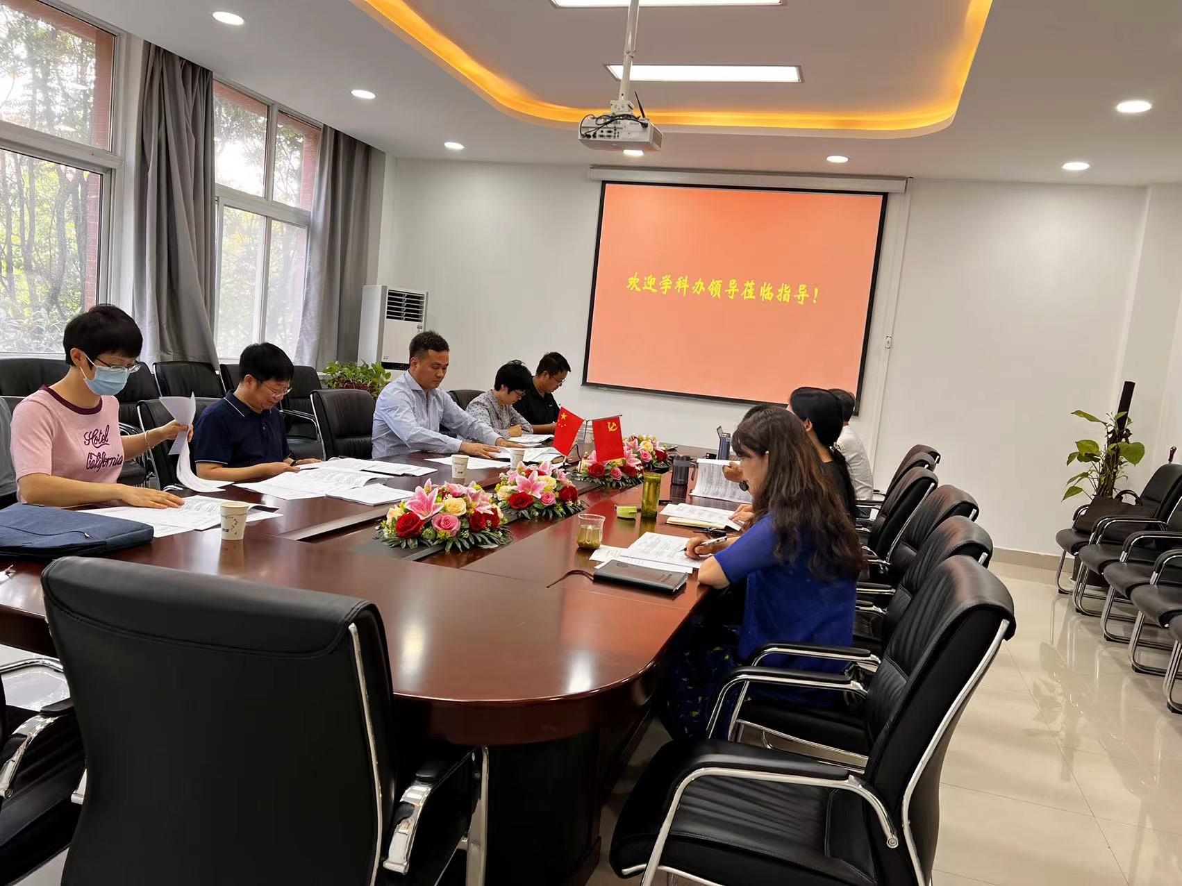 2022年9月14日上午,经济与管理学院在经管楼219会议室召开第九批河南省重点学科终期建设评估研讨会。校学科建设办公室肖艳秋主任、宋胜利副主任一行到会指导。经济与管理学院领导班子及学科骨干代表参会研讨,会议由刘珂院长主持。