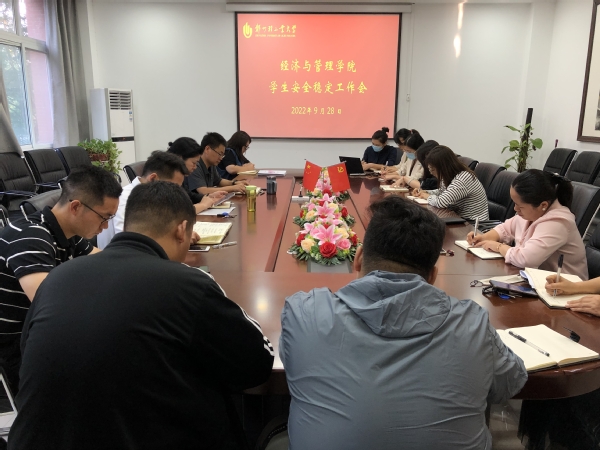 为从严从实做好学生安全稳定工作,进一步加强对学生的教育引导,经济与管理学院于9月28日下午在经管楼219召开了学生安全稳定工作会。学院党委书记张云超、院长刘珂、全体专兼职辅导员参加了会议。会议由学院党委副书记陈章美主持。