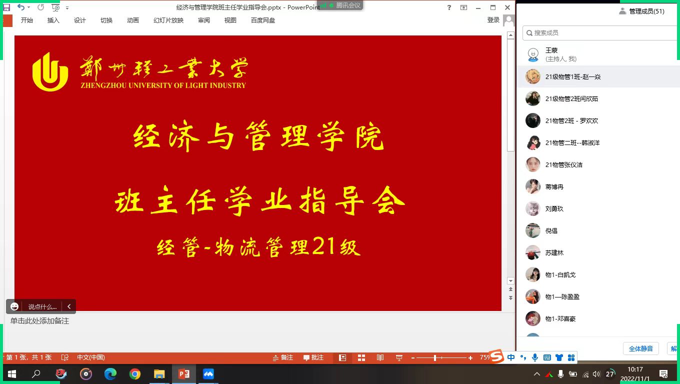 为深入了解学生思想、学习动态,下沉了解学生疫情防控期间学习情况与困难并给予针对性的指导,营造良好学习氛围,经济与管理学院全体班主任于10.31日-11.1日召开了学业指导会。