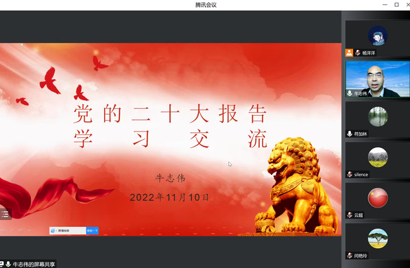 2022年11月10日下午,经济与管理学院邀请了首都经贸大学教授、浙江工商大学特聘教授牛志伟博士解读二十大报告,并就2023年国家社科基金选题提供指导。会议采用腾讯会议形式召开,经济与管理学院领导班子、教授、副教授、博士等共五十余人参加了会议。