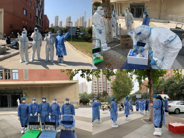 教师志愿者团队每天为保障学生安全及正常的学习生活,用心服务学生,做好送餐、组织并协助核酸检测以及生活物资、药品配送等工作。送餐看似简单的工作,却需用心才能做好,对接各级网格长统计好每一餐数量,争取以最快的速度把热乎乎的饭菜送到学生手中。