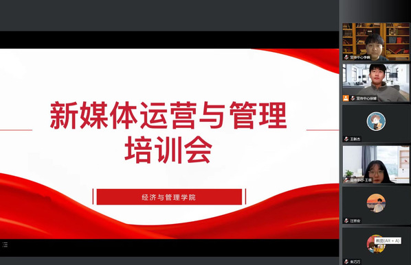 为进一步规范学院新媒体运营,提高新媒体工作水平,更好地发挥宣传思想工作“举旗帜、聚民心、育新人、兴文化、展形象”的使命任务,2022年11月10日下午,经济与管理学院通过腾讯会议线上方式,召开新媒体运营与管理培训会。学院团学组织负责老师和新媒体学生团队参加了本次培训。