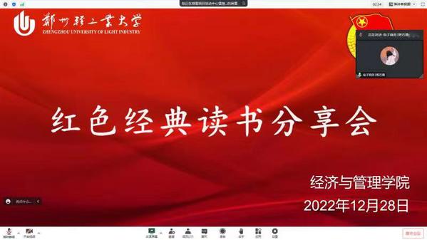 为学习宣传贯彻党的二十大精神,落实习近平总书记对广大青年的要求,展现青年的思想内核和蓬勃朝气,使红色文化和新时代精神融入学院文化建设,更好地鼓励经管学子深入学习党史,阅读红色经典书籍,丰富同学们的精神内涵,经济与管理学院于12月28日线上组织2022级全体学生开展“红色经典”读书分享活动。