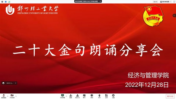 为深入贯彻党的二十大精神,学习习近平新时代中国特色社会主义思想,引导同学们将党的二十大金句学深学透,学出浓厚兴趣,学出实际效果,进一步激励经管学子读原著、学原文、悟原理,永远跟党走、奋进新征程。经济与管理学院组织2022级全体学生于12月28日下午线上开展了“以青春之我 赴党的二十大之约”为主题的金句传颂活动。