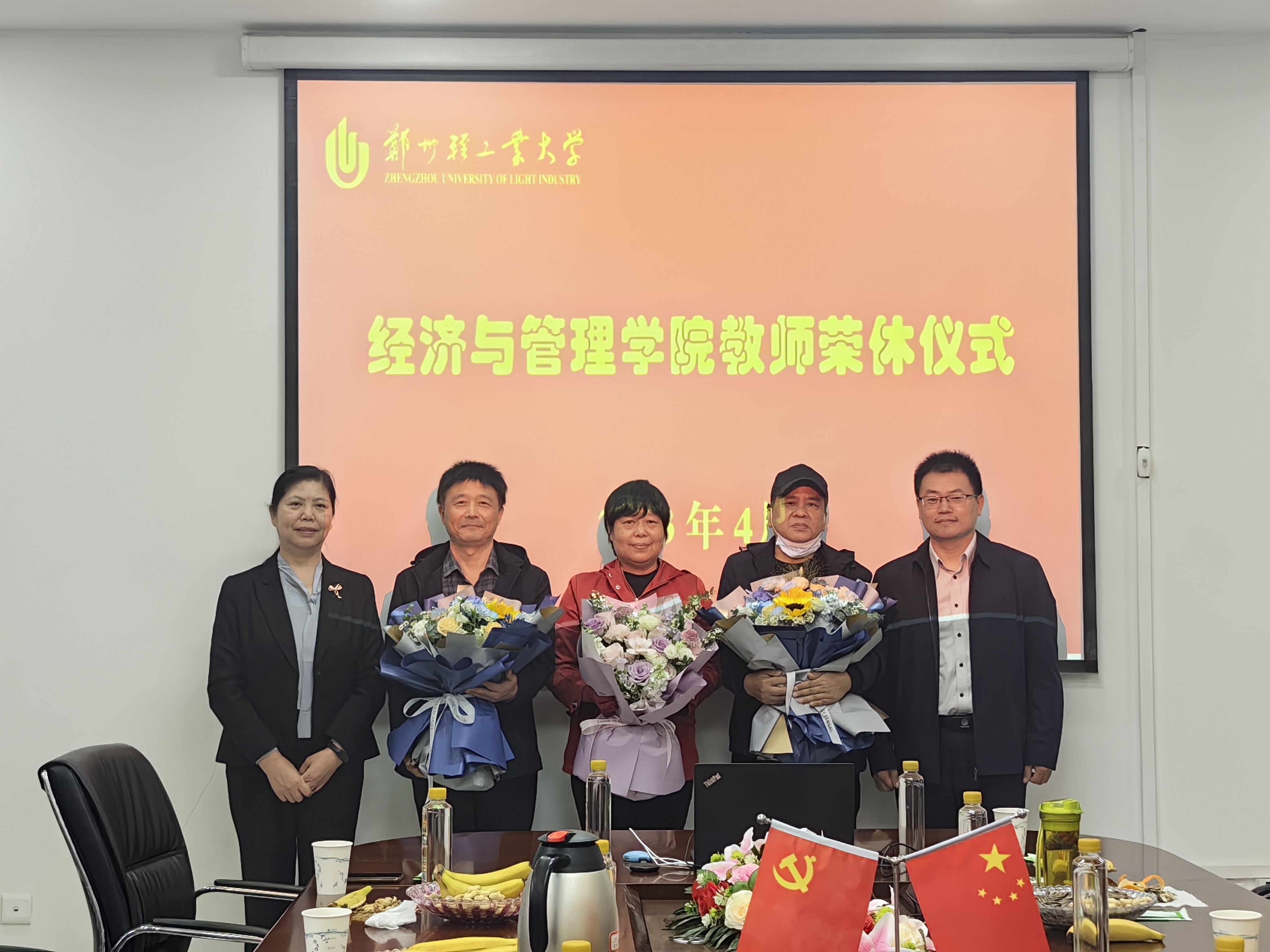 4月21日下午,经济与管理学院在经管楼219会议室为马春兴、李军红、王霞、王国付等四位退休教师举行了荣休仪式。学院领导班子成员和教师代表参加仪式。仪式由学院工会主席陈章美主持。