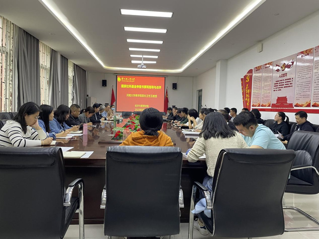 为进一步提升2024年度国家社科基金项目申报书撰写质量,9月28日下午,经济与管理学院在经管楼116会议室召开了国家社科基金申报书撰写指导与点评会议,会议邀请了河南大学商学院院长王性玉教授到会指导。会议由刘珂院长主持,符加林副院长、学院拟申报国基金项目的近30位青年骨干教师参加了此次会议。