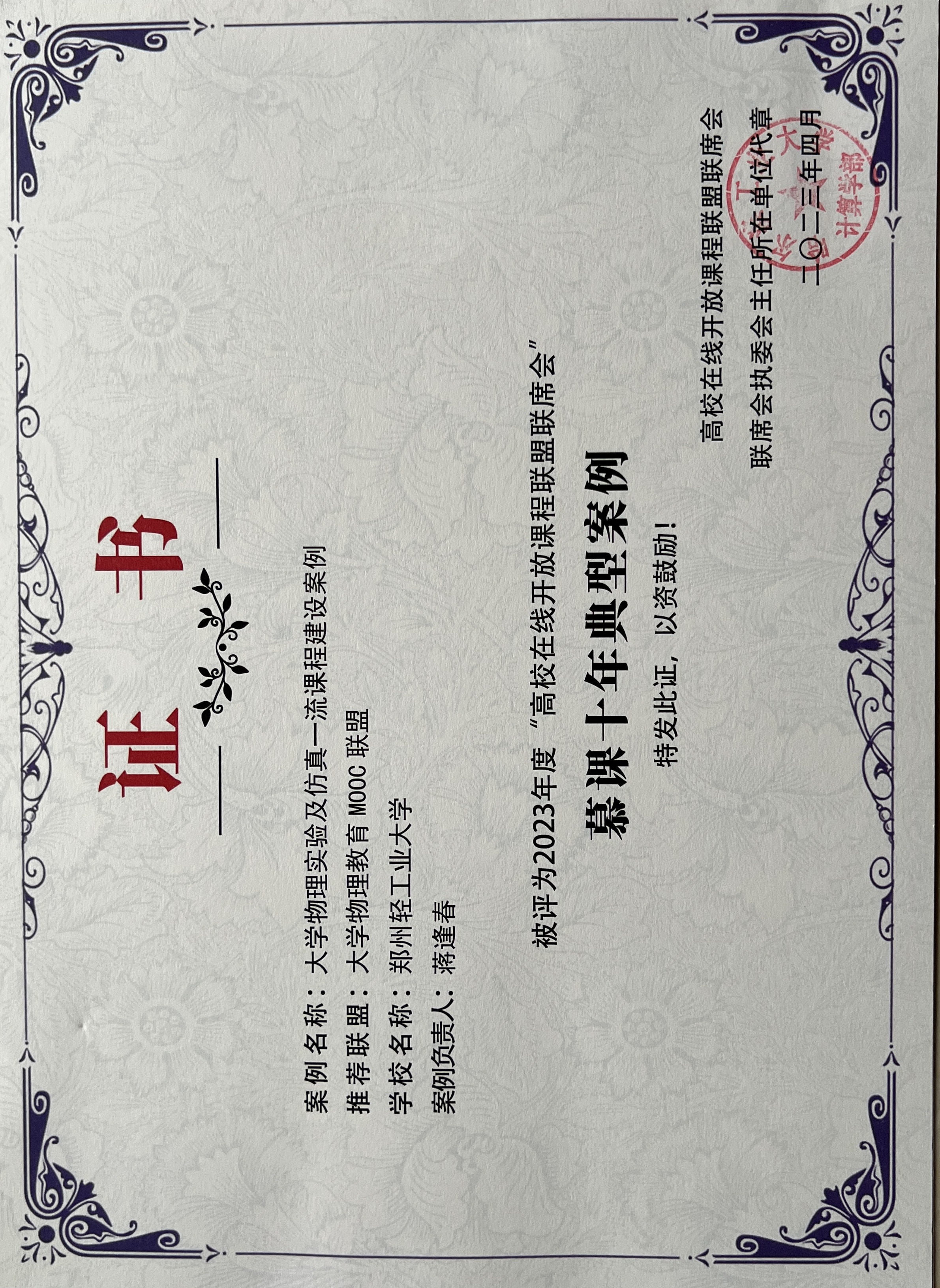 我院蒋逢春老师申报的《大学物理实验及仿真一流课程建设案例》经所属联盟推荐和联席会专家组认定,被评为2023年度“高校在线开放课程联盟联席会”慕课十年典型案例。通过本次会议,学院老师了解了慕课发展的新趋势,学习了慕课建设的新经验,学院也将以入选“慕课十年典型案例”为契机,发挥典型案例的引领与示范作用,全面助推课程质量的提升。
