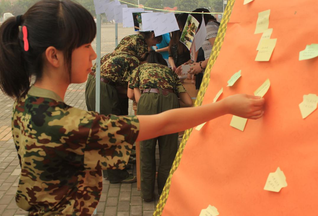 中午,结束军训后,陆续有新生被“照片墙”和宣传板吸引,来到活动台前。本次竞猜活动题目围绕中秋佳节设置,题目类型丰富,包括诗词,字谜,以及中秋习俗,歌曲等。编辑部成员为新生介绍活动。他们写下自己的中秋寄语,贴在“寄语墙”上,之后获得编辑部成员们赠送的精美明信片、水笔或月饼。寄语中有对大学生活的憧憬,有对自己的美好期待,更多的是寄托对远方的亲人朋友的思念与祝福。随着人数增多,活动现场气氛也越发热烈。有两个女生看到照片时十分惊讶,说:“照片上是我们的方队,可以把这张照片送给我们吗?”编辑部成员们知道她们想把照片留作自己军训生活的纪念,于是欣然把照片送给了她们。很多新生得知《轻院青年》是由学生自己创办的校刊,对此很感兴趣,成员们向他们介绍编辑部的情况,并将以往的《轻院青年》期刊拿给他们看,并希望他们多多关注即将开始的赠书和招新活动。在活动过程中,成员们向新生少量赠送了杂志和月饼,传递了中秋时节的温馨祝福。