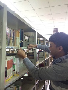 18日14:50,党员先锋队成员在图书馆前面集合,分成了四组,分别对图书馆的二楼、三楼的借阅区和阅览室的卫生进行打扫;在阅览室的老师指导下,协助老师给新书分类,并贴上相应的位置标签,归回原位。先锋队成员勤劳积极的工作态度得到了图书馆老师的一致好评。