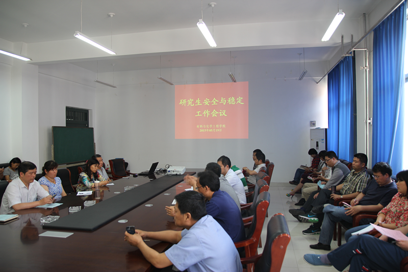 为切实做好研究生安全稳定工作,519日下午15:00,材料与化学工程学院积极响应我校文明办加强文明校园建设的号召,在科学校区化工楼222会议室召开研究生安全稳定工作会会议。学院领导班子成员、研究生导师、研究生辅导员及教学管理人员等出席了会议,会议由党总支副书记宋德涛主持。