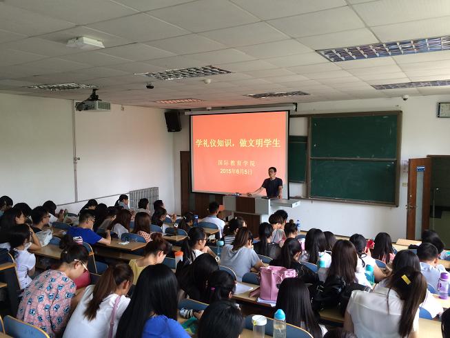 201565日中午,我校在教二楼西二阶教室开展了学礼仪知识,做文明学生教育活动,此次活动由我校文明办主办,国际教育学院承办,学院学生代表和学生干部代表参加了活动。