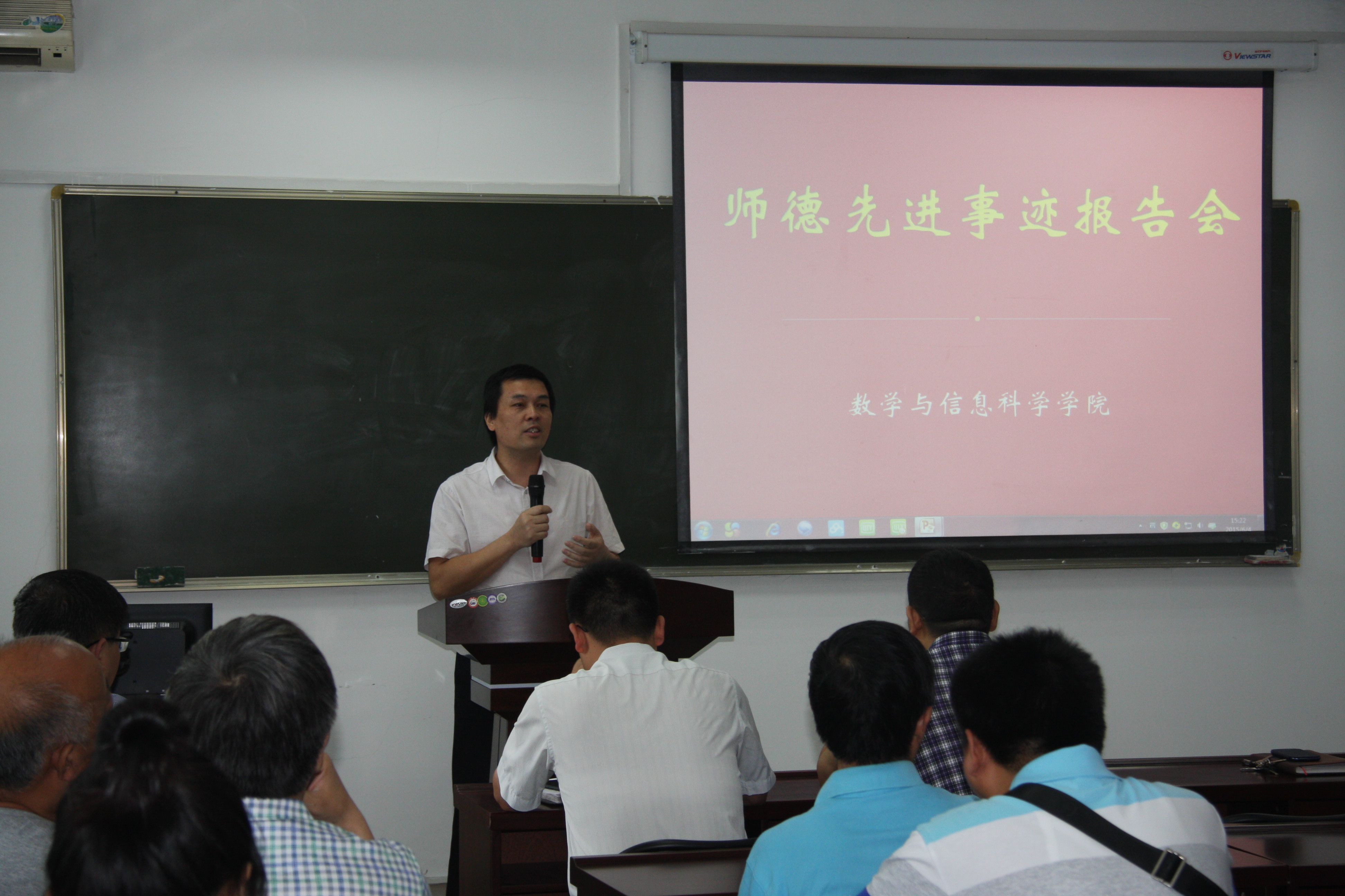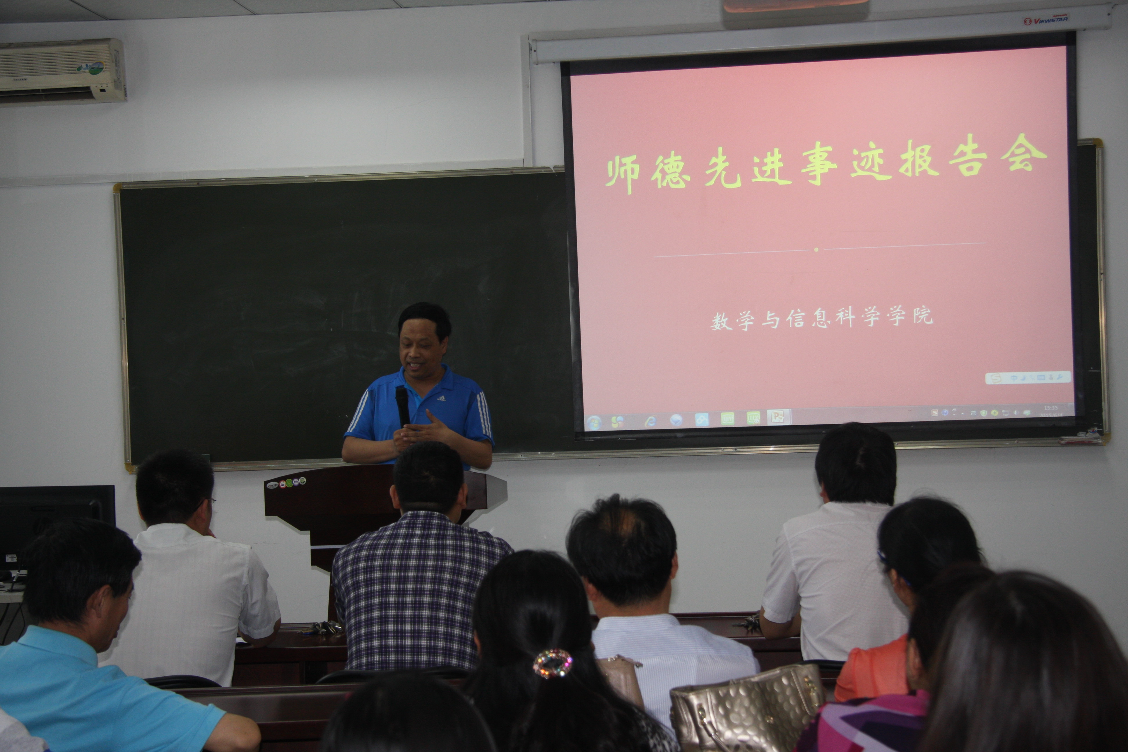 为了进一步深化师德师风建设,积极创新师德师风建设的方式和方法,巩固师德师风建设的成果,我校于6月4日在东一楼216会议室举行了师德先进事迹报告会。此次活动由我校文明办主办,数学与信息科学学院承办,报告会由数学与信息科学学院党总支书记黄守佳主持,师德先进个人裴云霞、张银鹤、郭卫华分别作了个人先进事迹报告,全体教师参加会议。