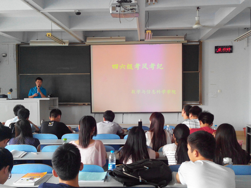 为营造良好的考试环境,培养良好的学风、考风,结合即将到来的大学英语四六级考试,我校各年级分别召开了英语四六级考试诚信教育会。此次诚信教育活动由我校文明办主办,数学与信息科学学院承办。
